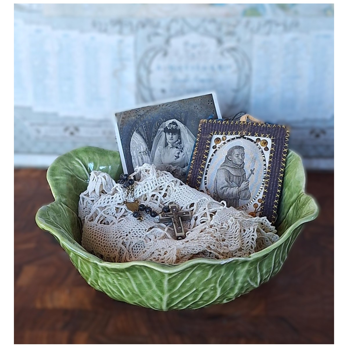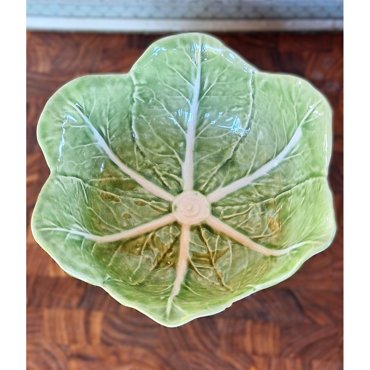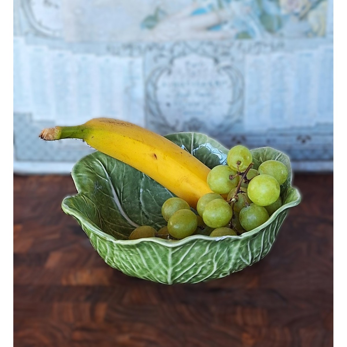 Fin brugt salat/frugt-skål, der er formet med blade. Skålen er fra Portugal. Den har et på små chips - se billeder - men er ellers fin. Lige nu er de grønne skåle mm efterspurgt i Frankrig mm.