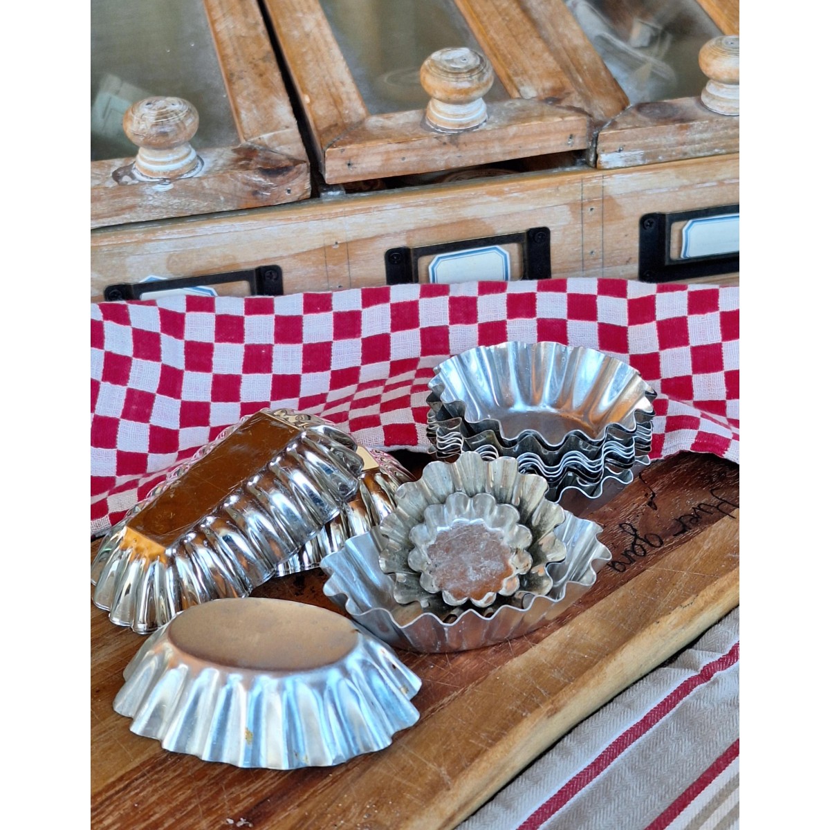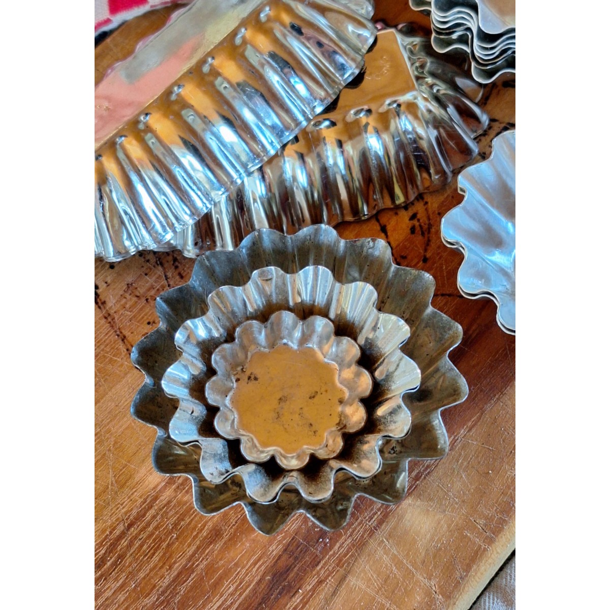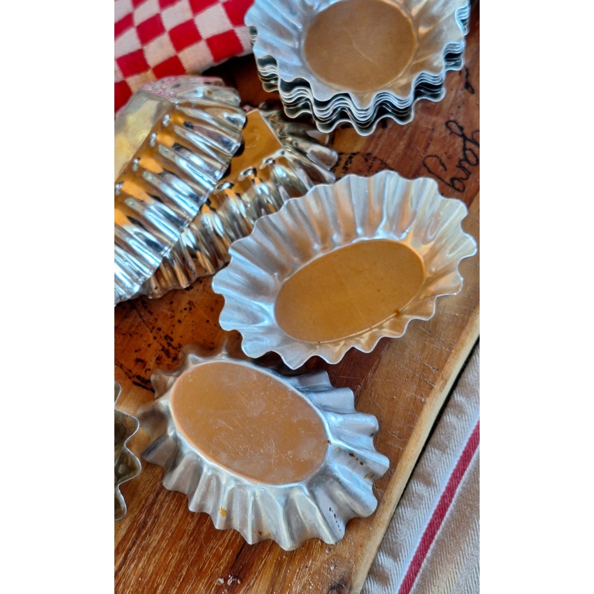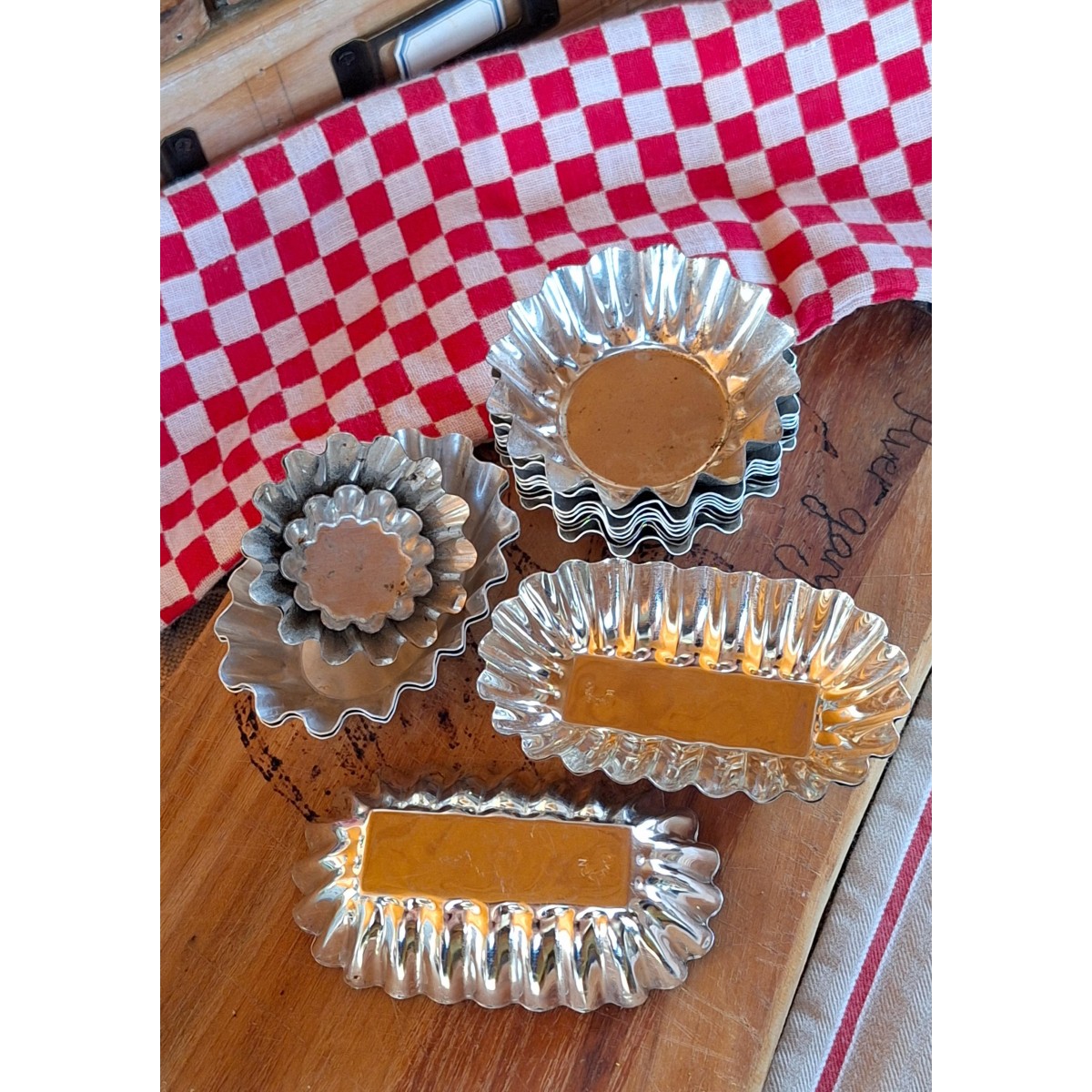 De fine gamle petit fours-forme sælges samlet. De er også fine som fx. til dekoration. Formene har almindelig brugspatina...SE BILLEDER..
