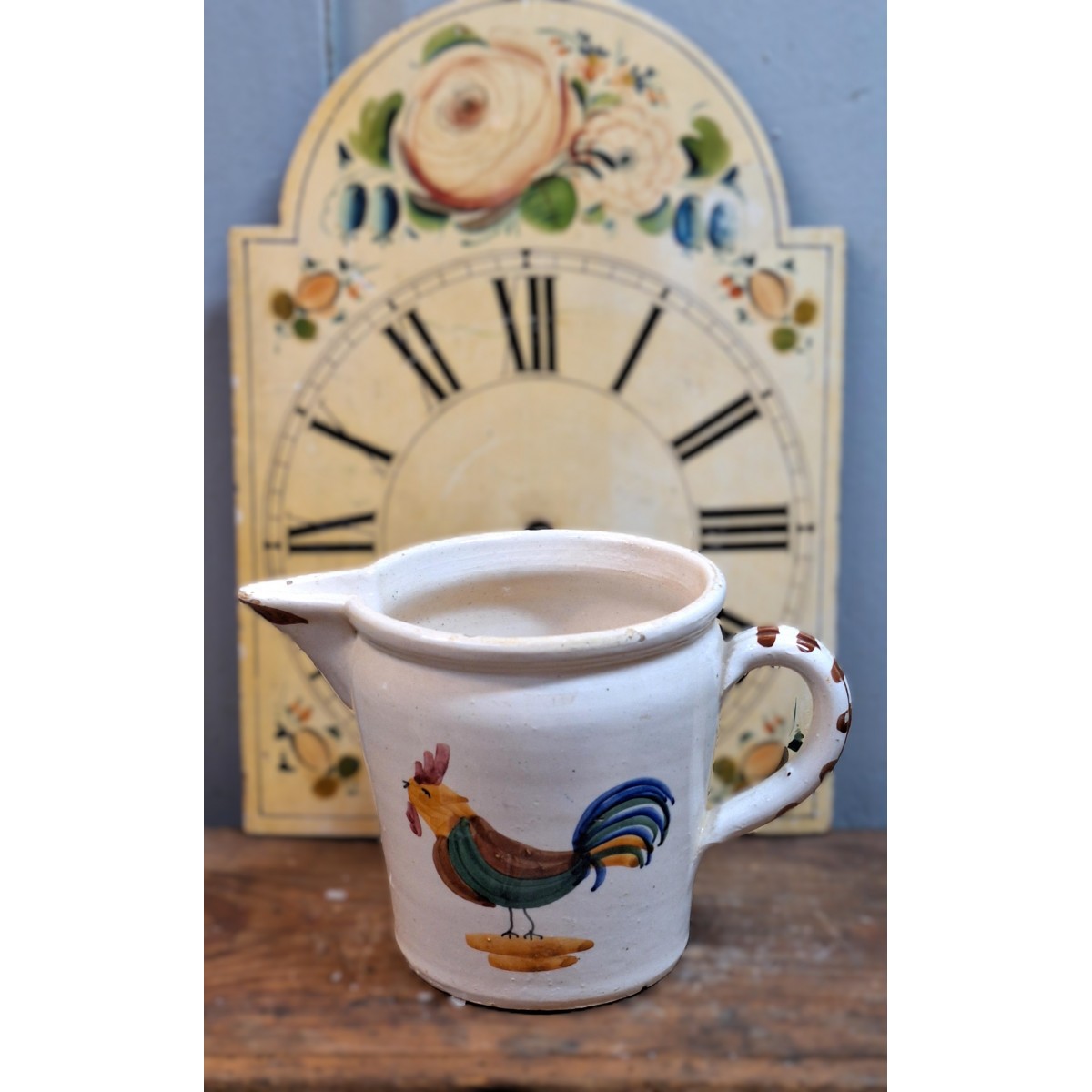 Se fuld størrelse Den fine gamle franske kande er med et naivt motiv af en hane på den ene side. ...Læs mere.