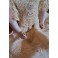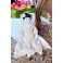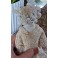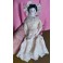 Den antikke dukkehus dukke i stof og porcelæn er så fin med blondekjole, mamelukker og kyse. Hovedet er ældre, end tøjet, der er kommet til senere. Dukken er købt brugt, og med tøj mm. Der forekommer patina.
