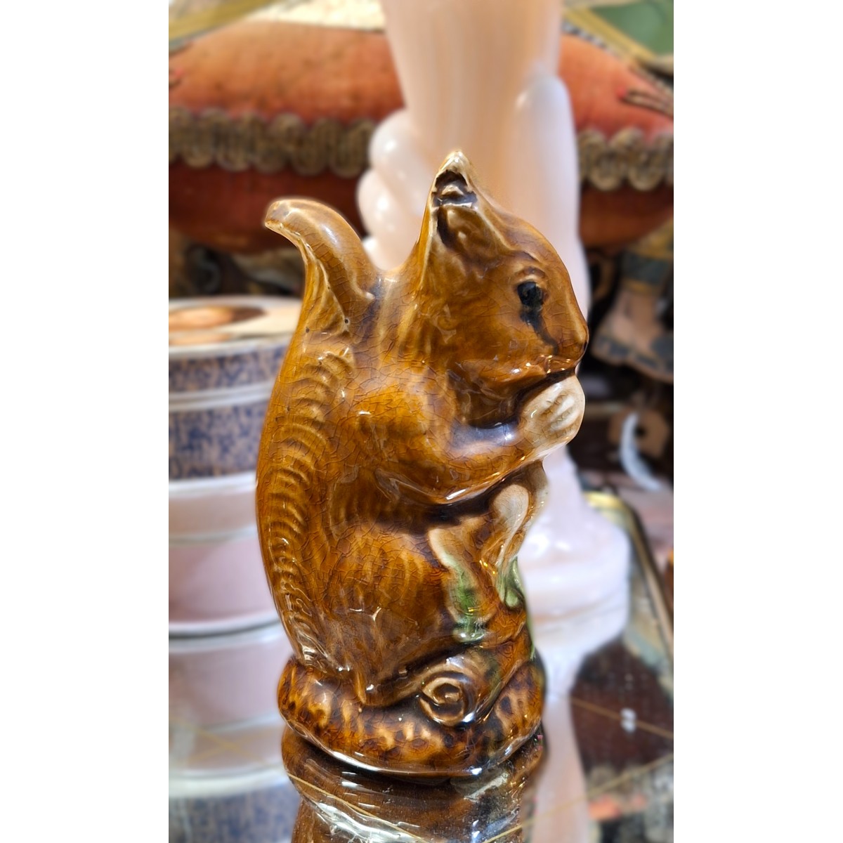 En skøn antik fransk sparebøsse formet som et egern. Figuren er i fajance. På bagsiden er møntindkast hullet....SE BILLEDER...Flot og velholdt, taget alderen i betragtning