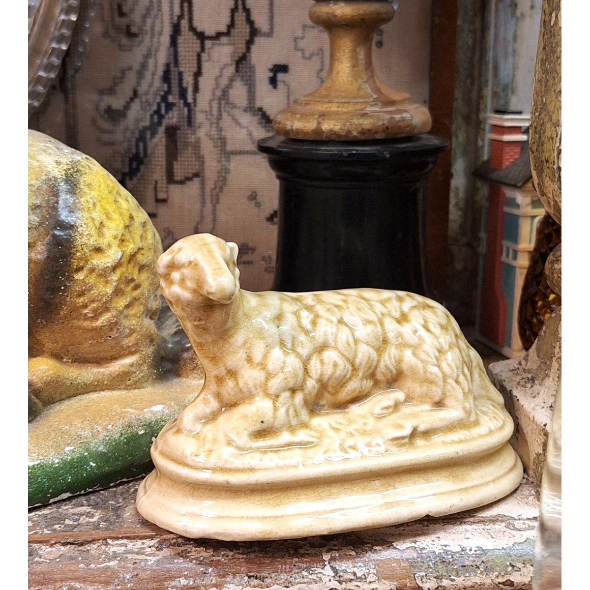 Se fuld størrelse En antik fransk sparebøsse formet som et liggende får....Læs mere
