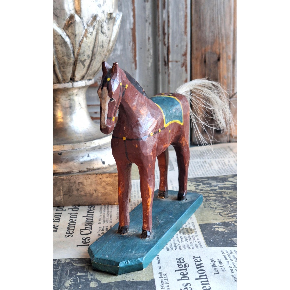 Se fuld størrelse Træ-hest på Plade Trælegetøj 1920' [13,5cm] Erzgebirge