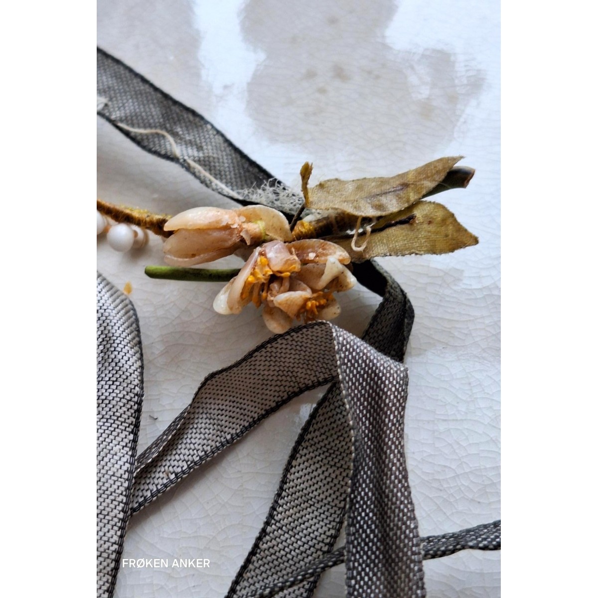 En smuk, antik fransk brudekrans med voksknopper og blomster. Brudekronen har et over 60 cm bånd...Læs mere