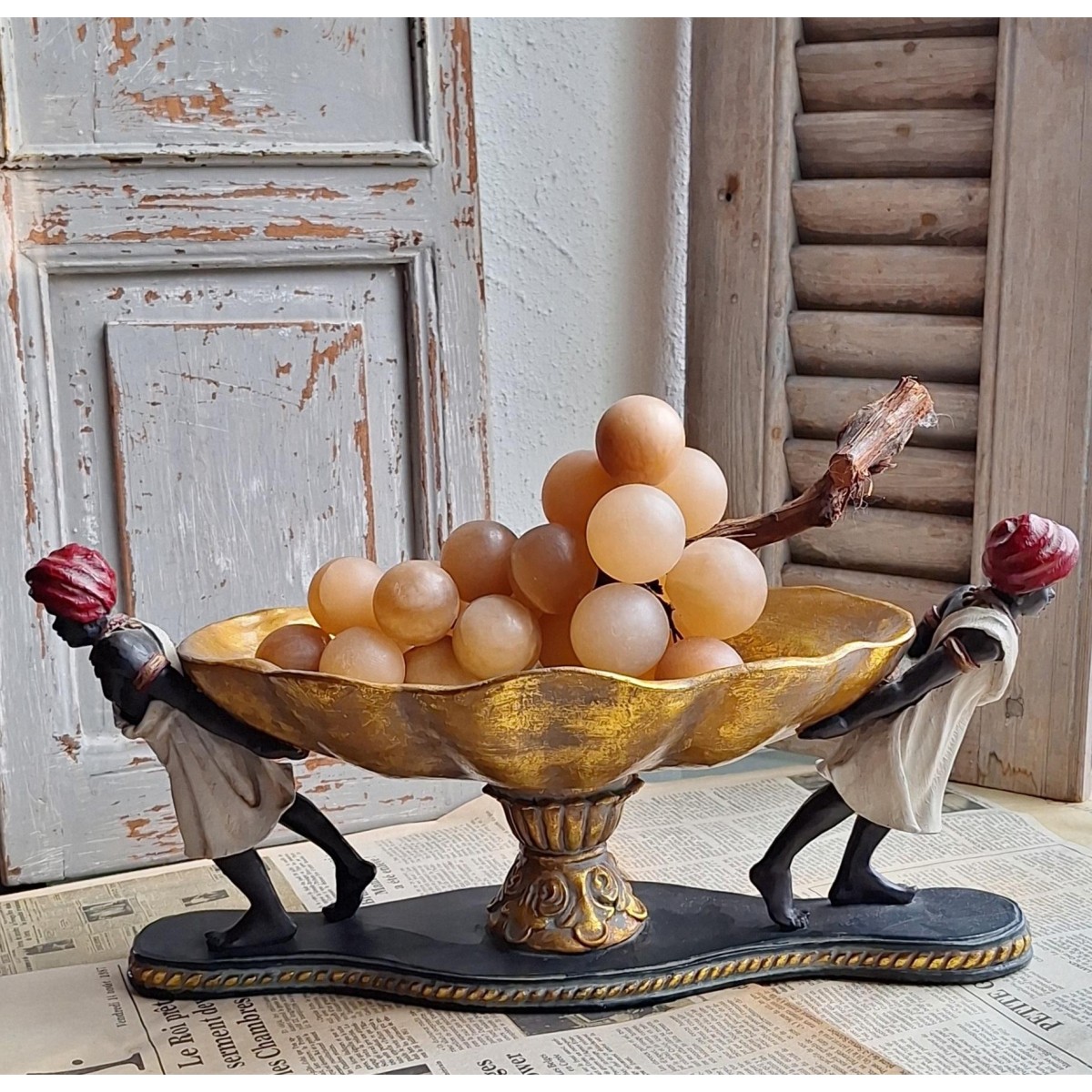 Flot guld vintage opsats, med to mørke mænd, med røde turban. Opsatsen er ret tung. Materiale er ukendt. Ikke metal. Den er i en en flot stand, og meget dekorativ til både frugt, dekorationer mm.