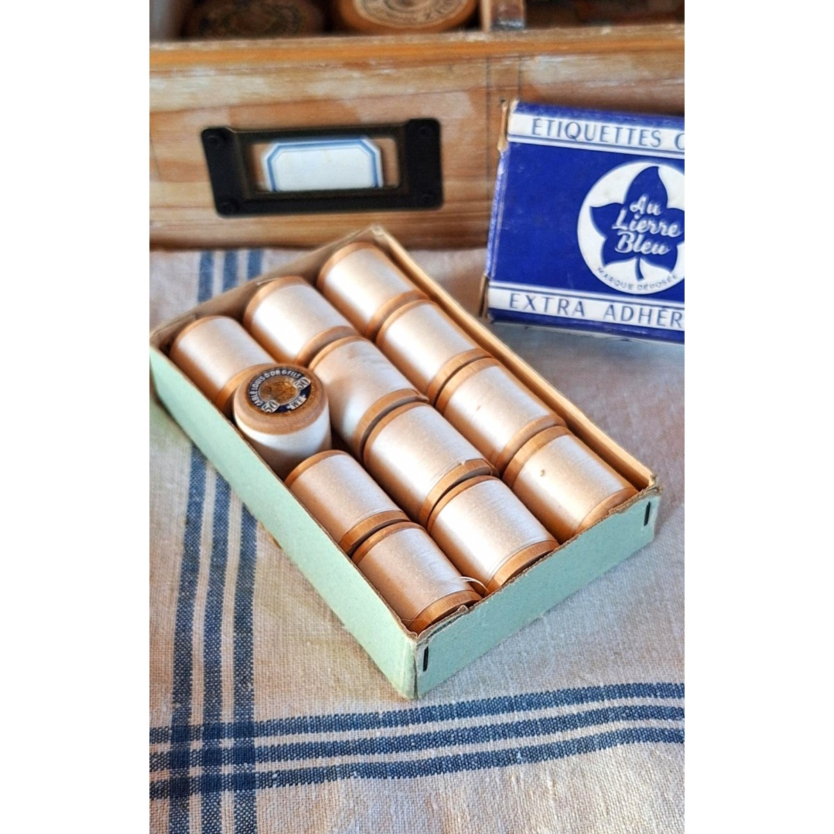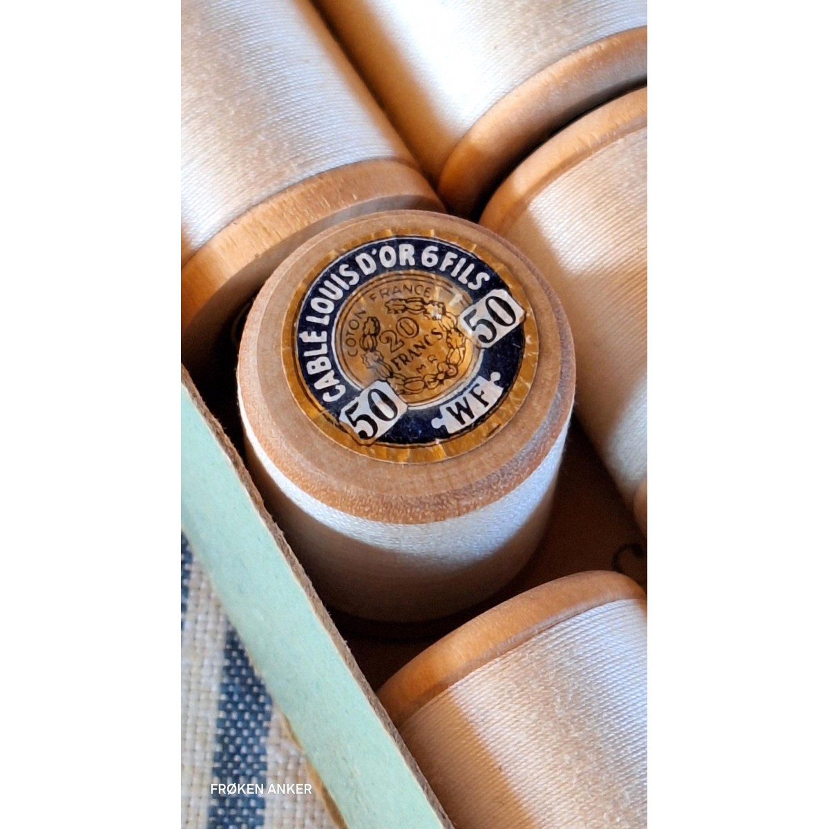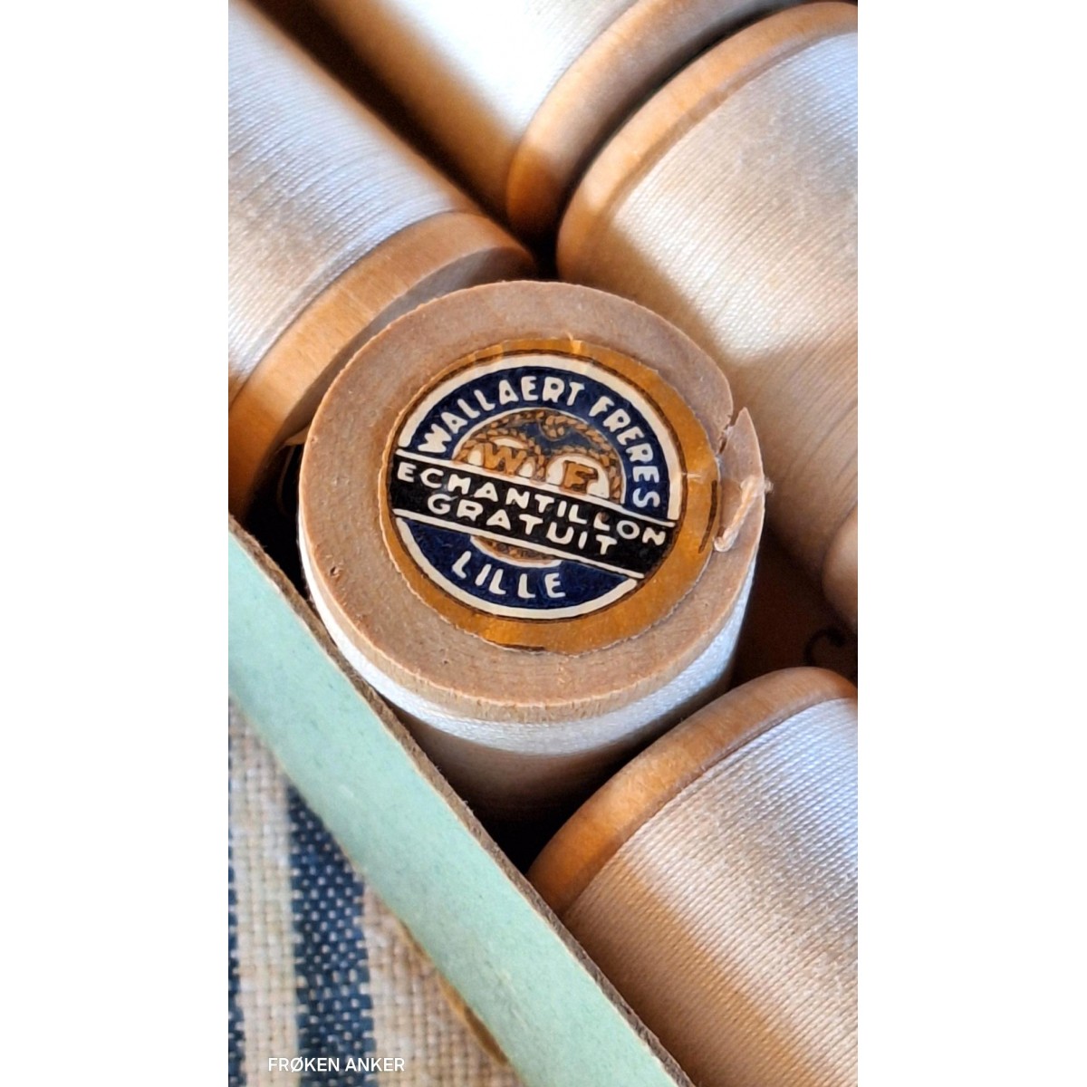 Wallaert Frères, grundlagt i 1815 i Lille, var en fremtrædende fransk tekstilvirksomhed og bomuldsspinderi. De 12 ruller sytråd stammer fra en gammel butik - læs mere