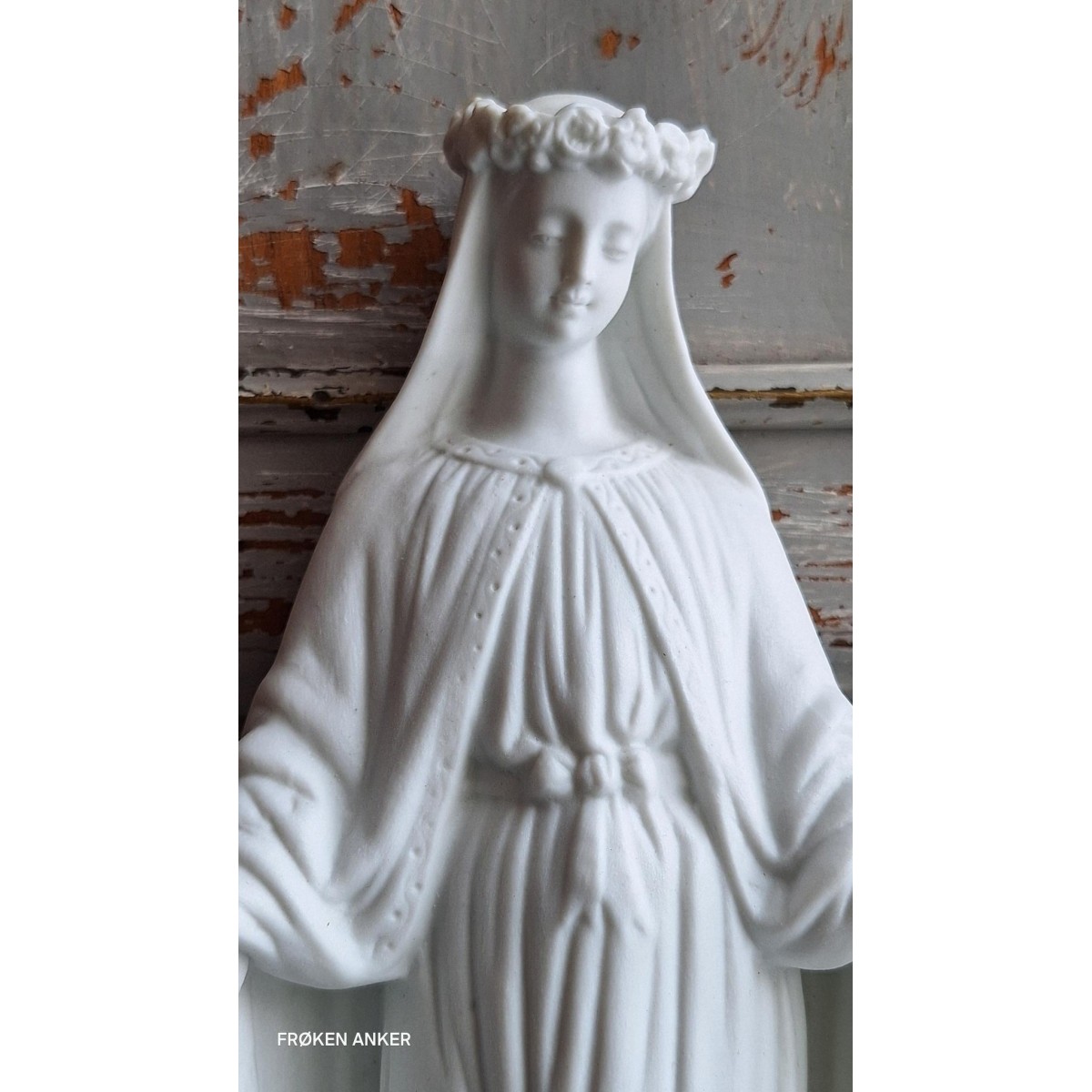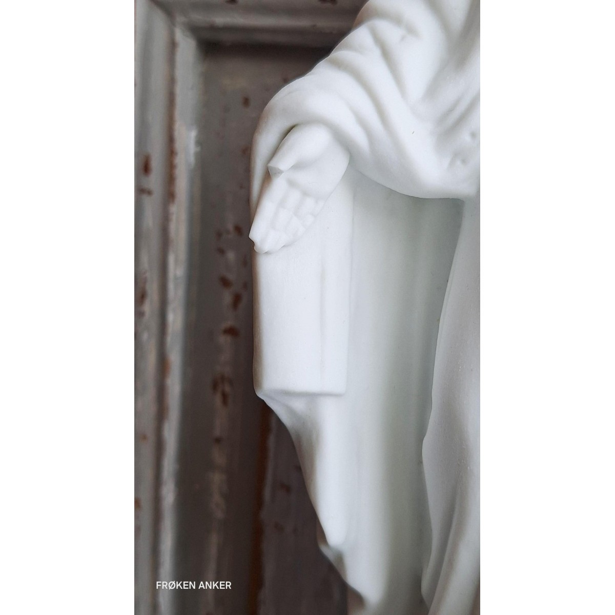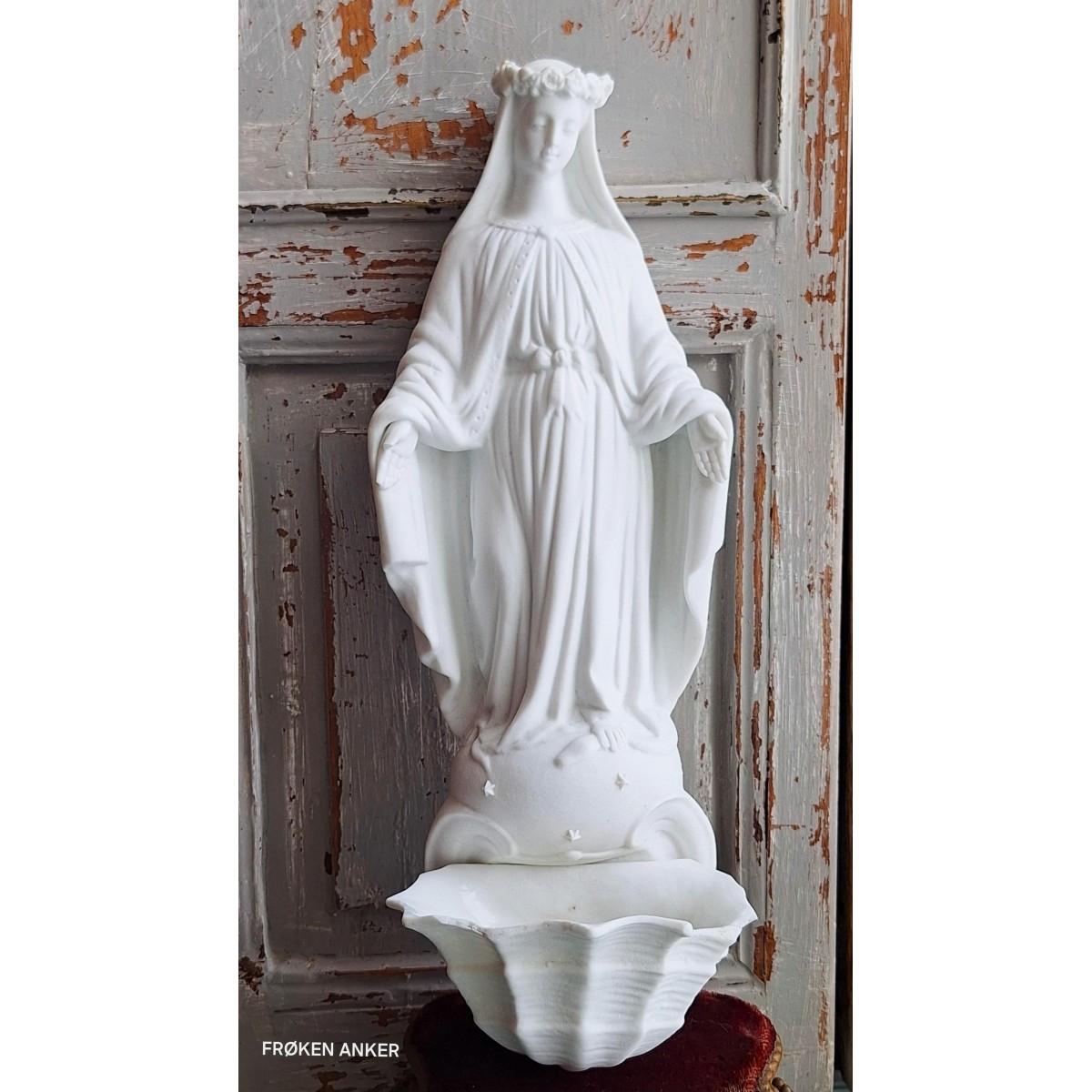 Antik fransk 'Vor Frue af Nåde' vievandskar i biscuit fra 1890-tallet. Denne unikke Benitier-type er stadig i god stand for sin alder...Læs mere