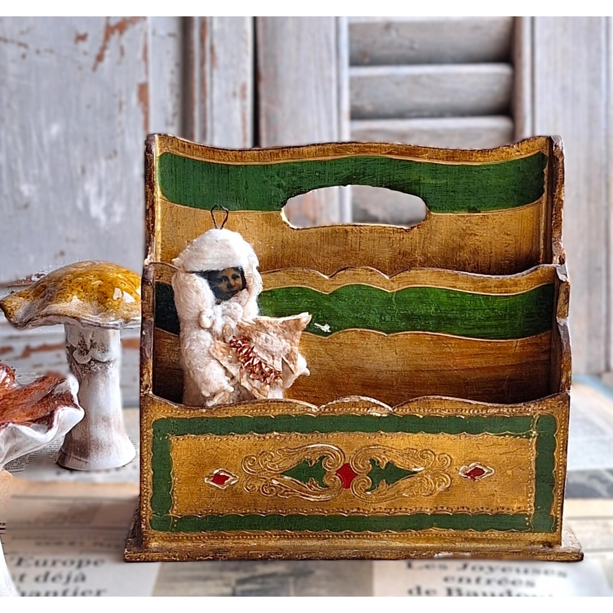 Dekorativ gammel italiensk brevordner i træ. Den er dobbelt, og er i smukke gyldne farver. Den er smukt dekoreret. Den har charme. Aldersbetinget brugsspor kan forekomme...SE BILLEDER..