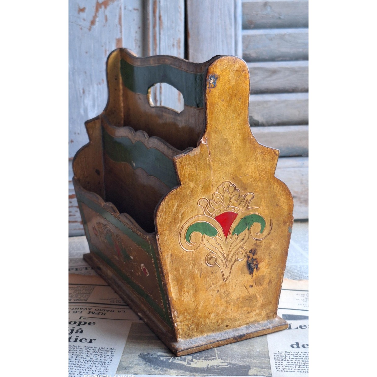 Se fuld størrelse Dekorativ gammel italiensk brevordner i træ. Den er dobbelt, og er i smukke gyldne farver...Læs mere