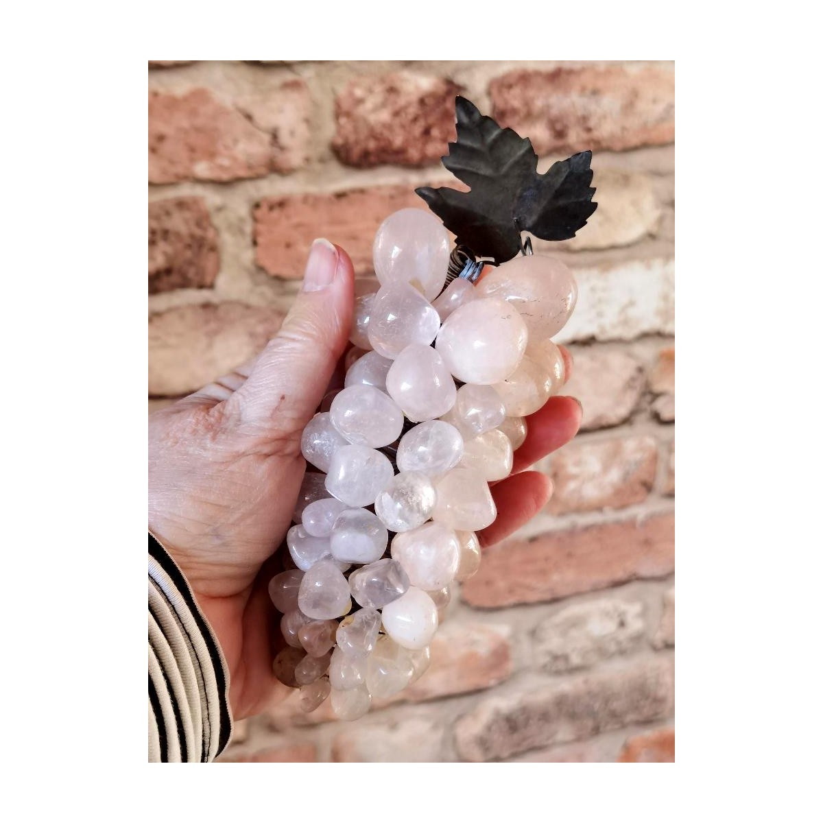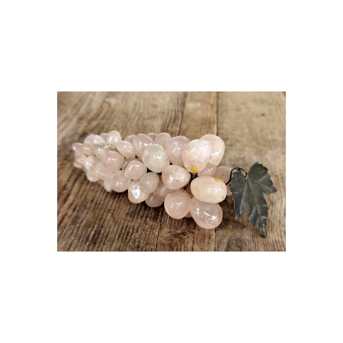 Stor gammel drueklase i rosa halvædelsten, rosakvarts. Meget dekorativ. Og en genstand, man har lyst til at røre ved. Drueklasen er en brugt vare. Så der kan forekomme patina..SE BILLEDER..PS...Inden i naturstenene sidder der rester fra for millioner af år siden. Det er de gule og sorte prikker i stenene.