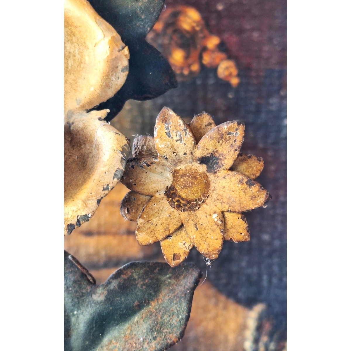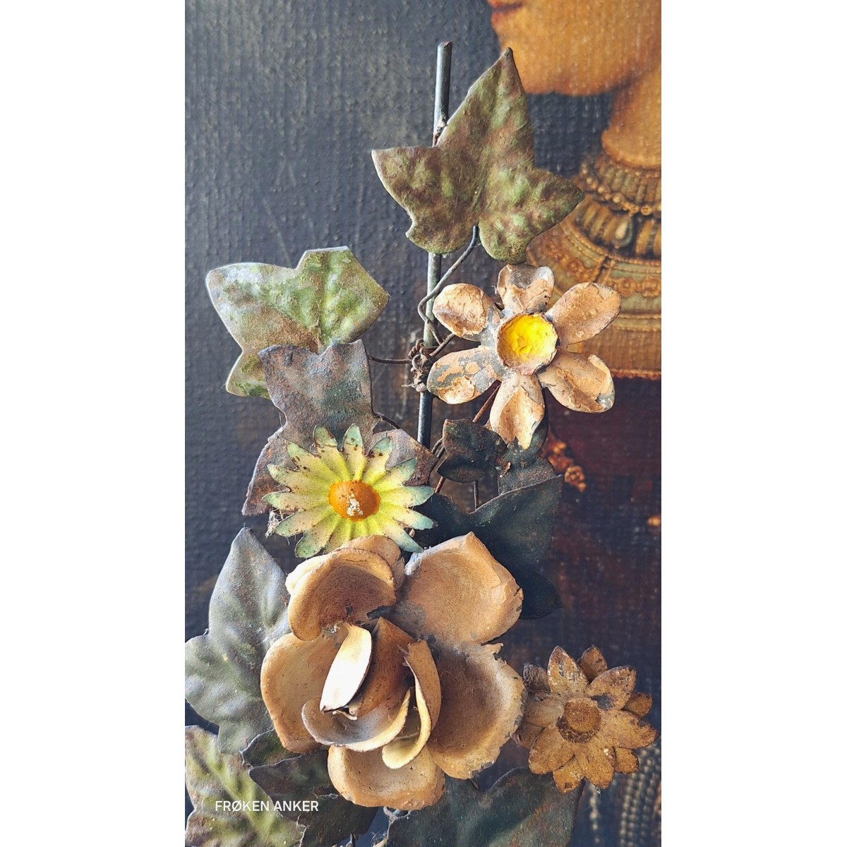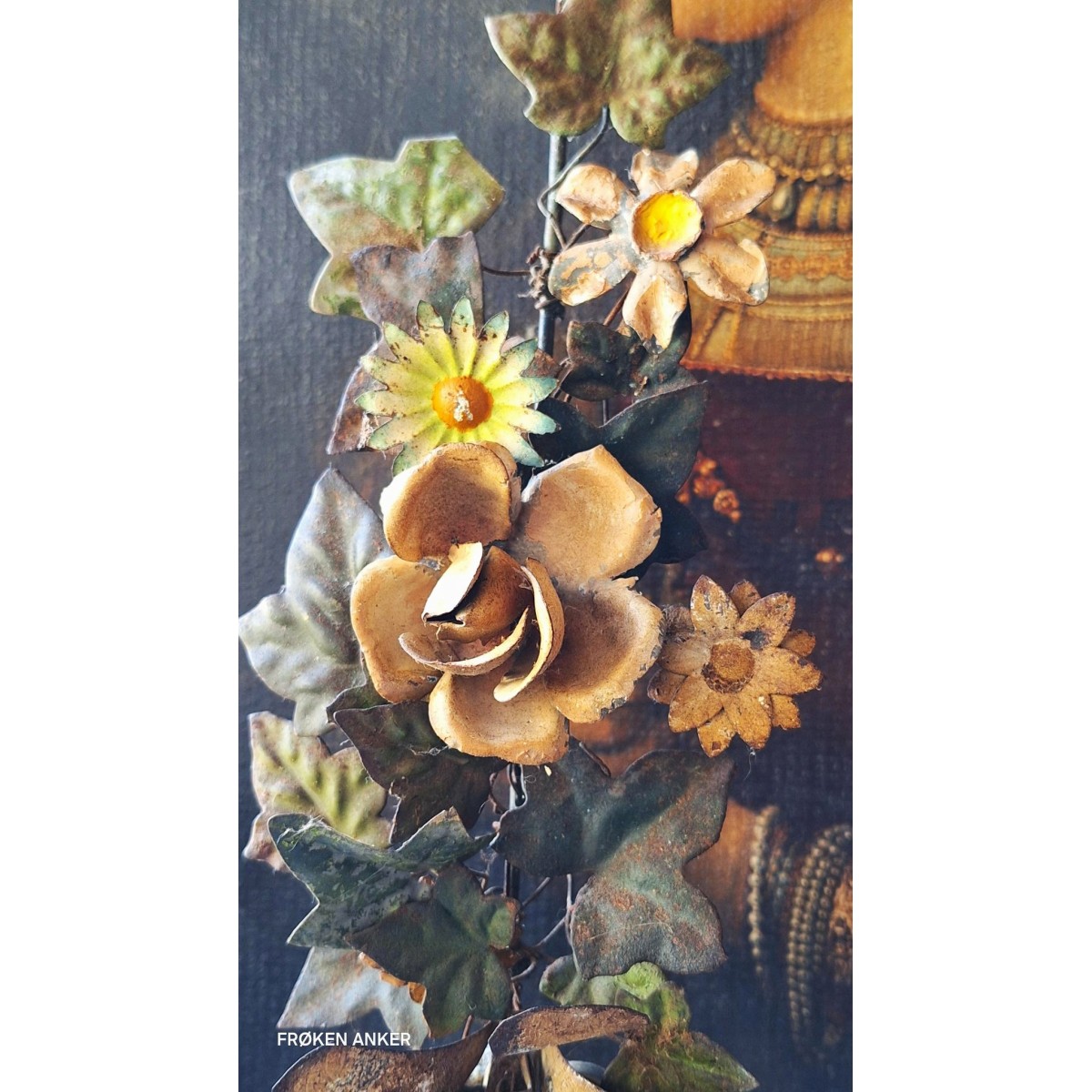 Se fuld størrelse Antik Italiensk Træ Vase Bord Lampe med Metal Blomster [L43cm]