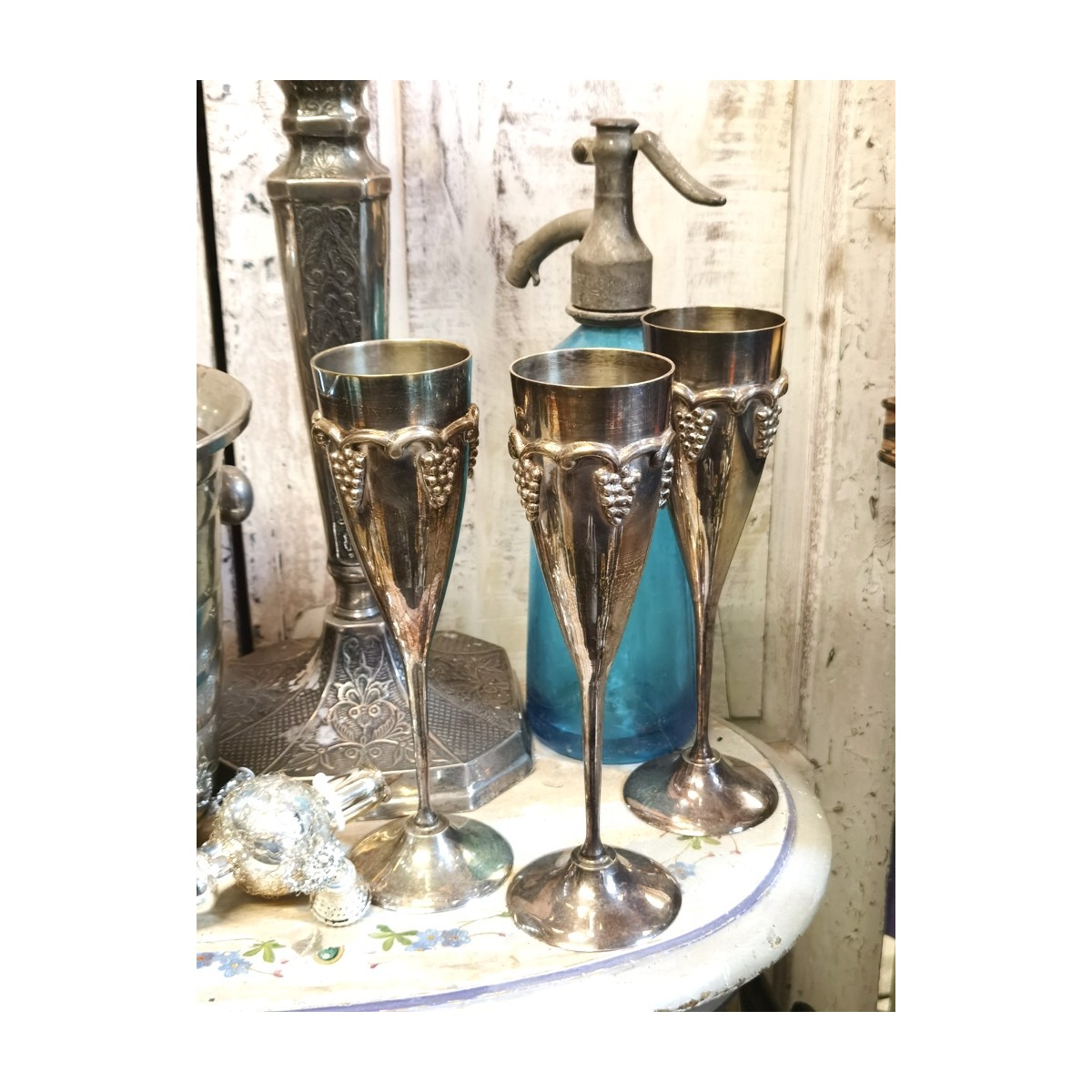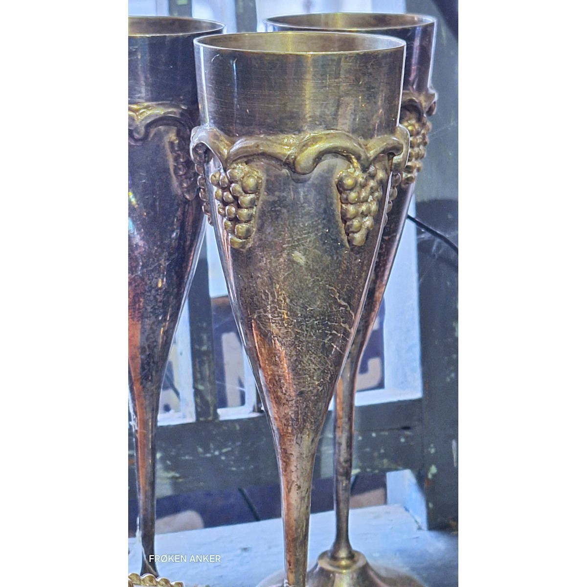 Se fuld størrelse 6 STK - De gamle vin/champagne bægre er dekoreret med vindruer...Læs mere