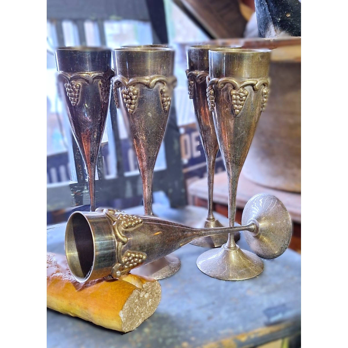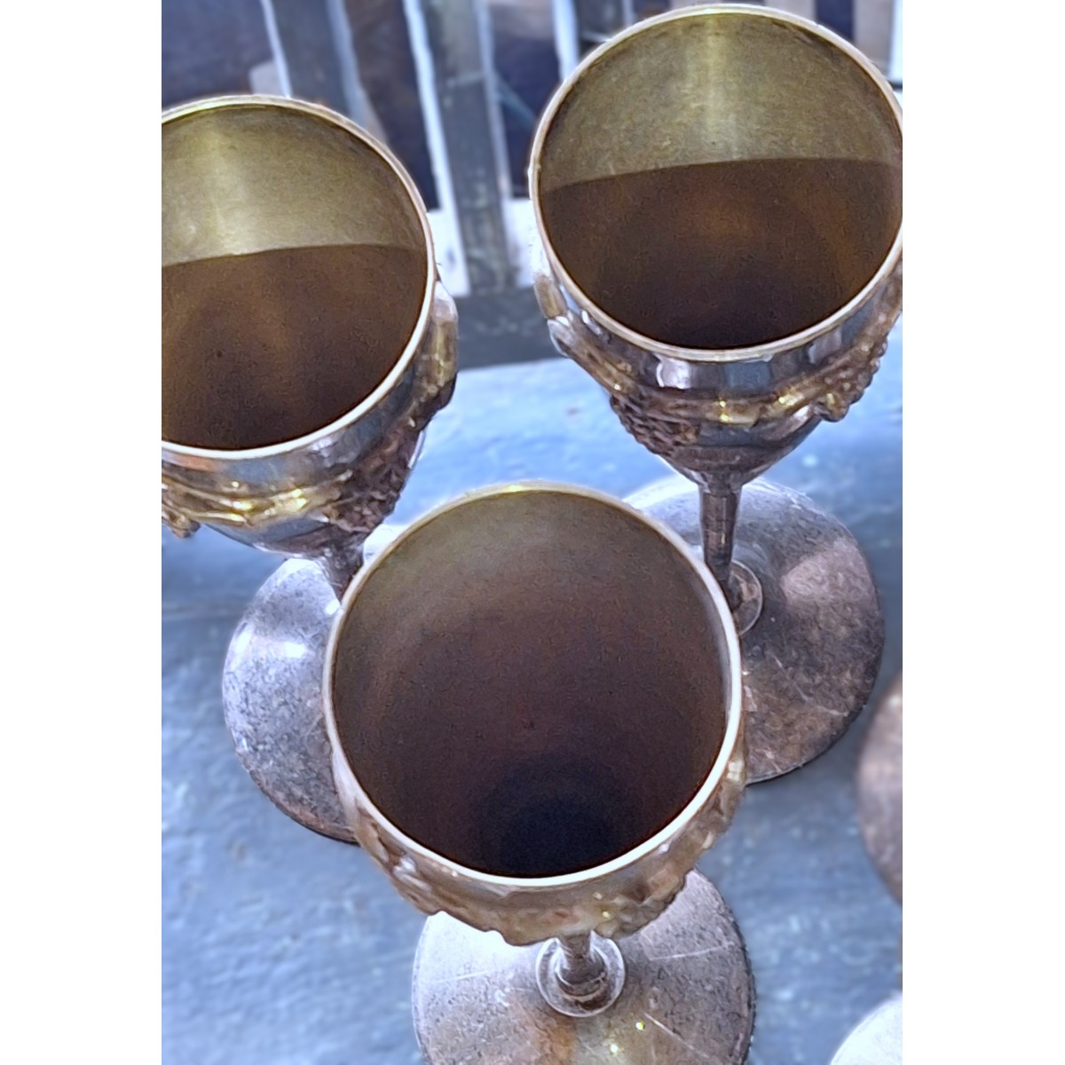 Se fuld størrelse Gl. Champagne Vin Bæger i Metal [H22cm] 6 stk