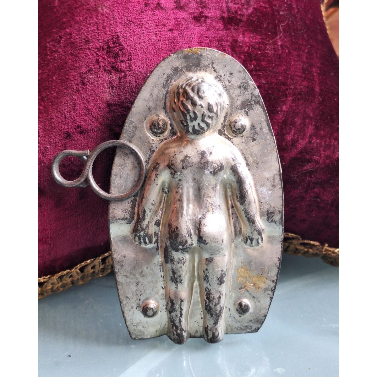 SJÆLDEN - En fin og gammel form, der forestiller et barn. En speciel og dobbelt chokoladeform...Læs mere