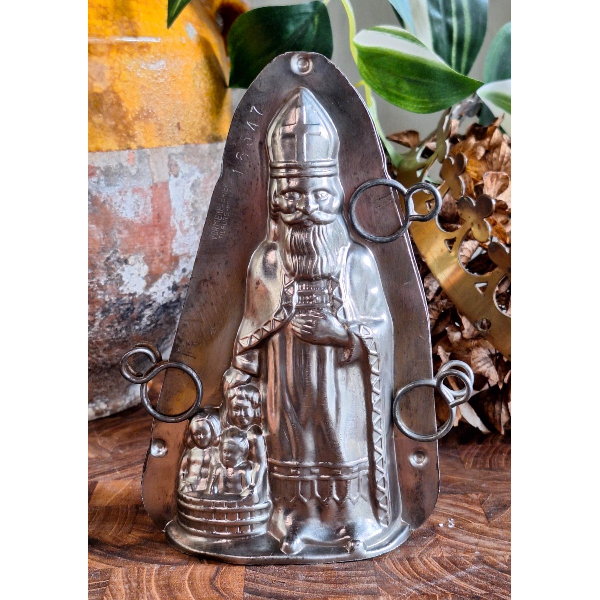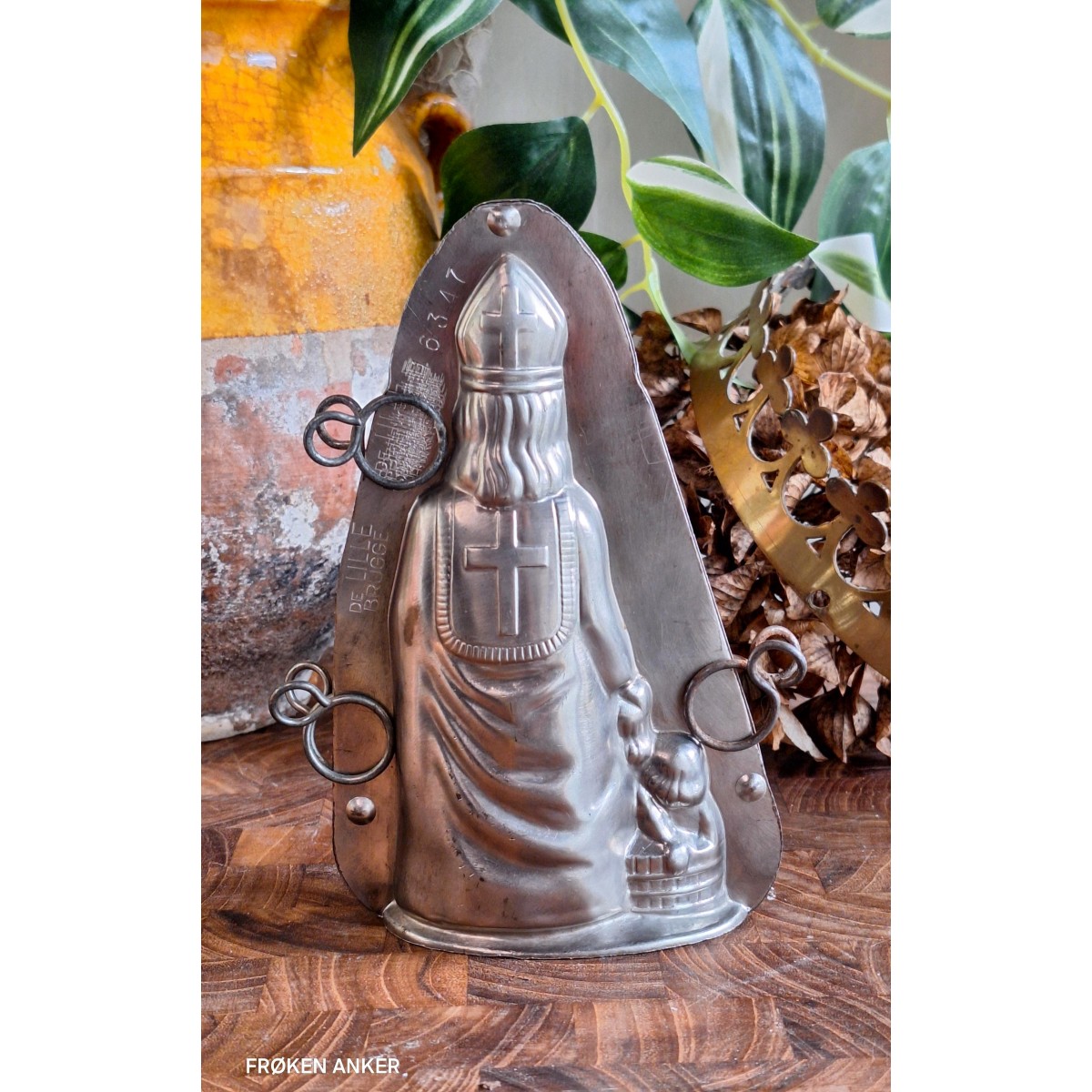 En gammel belgisk chokoladeform, der forestiller Skt. Nikolaus/senere Julemanden. En velholdt og dobbelt chokoladeform fra chokoladens hjemland. Formen er meget flot, og detaljeret.