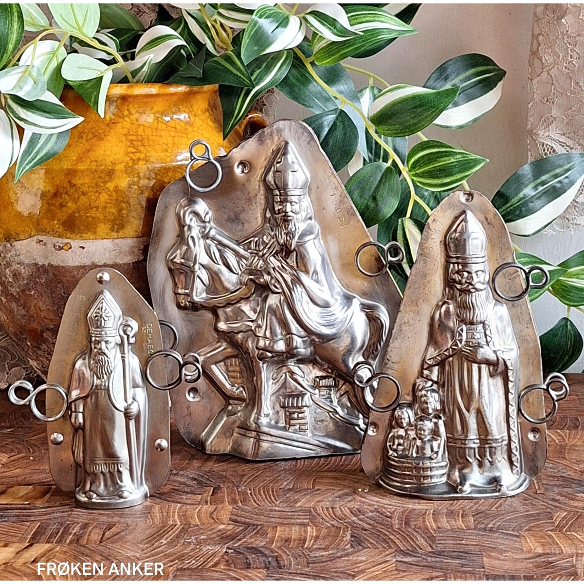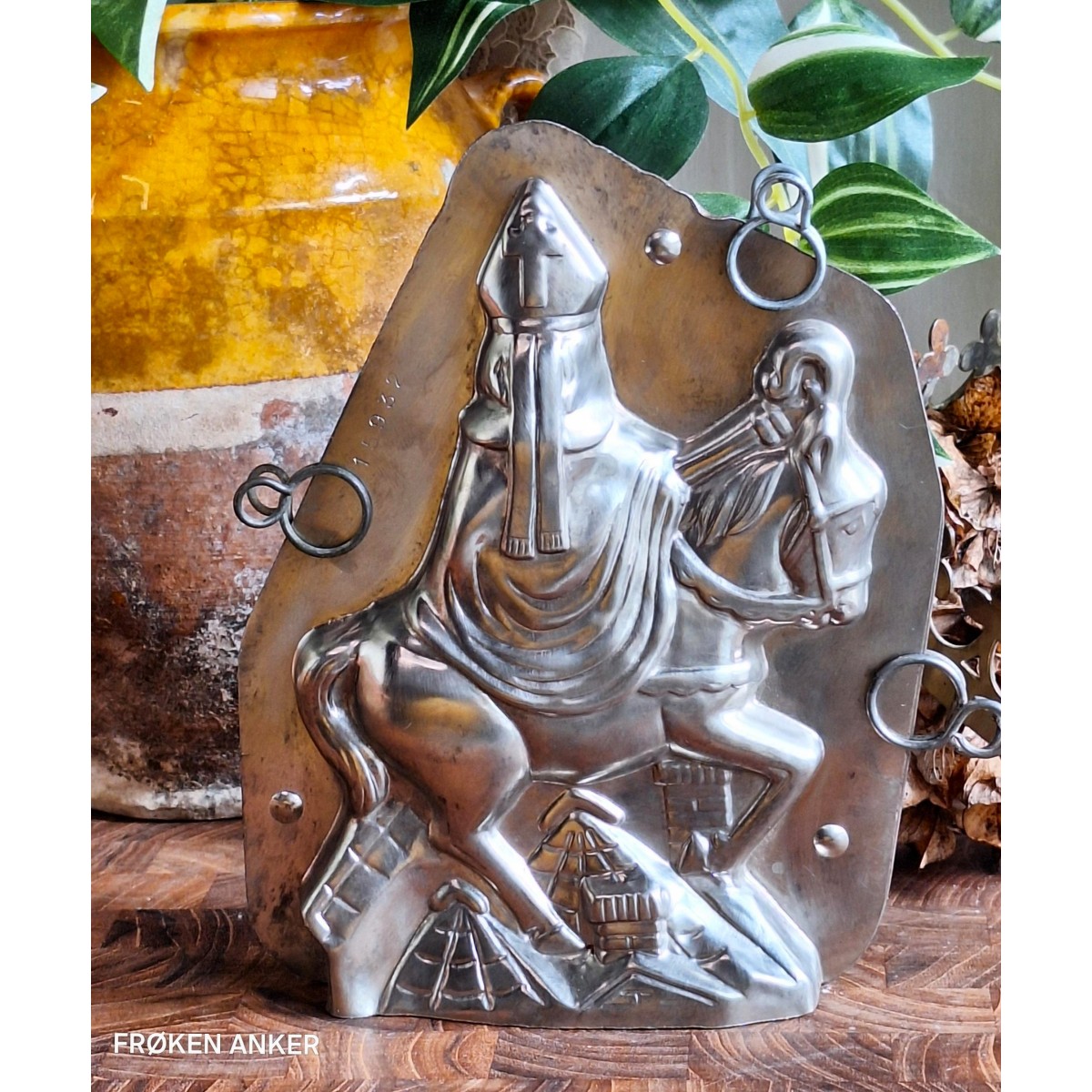 En gammel belgisk chokoladeform, der forestiller Skt. Nikolaus/senere Julemanden. En velholdt og dobbelt chokoladeform fra chokoladens hjemland. Formen er meget flot, og detaljeret.