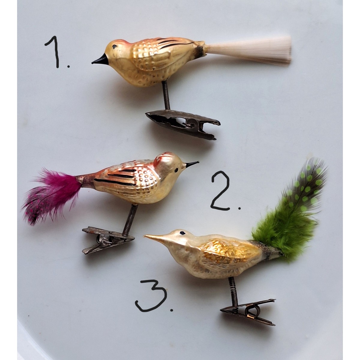 Se fuld størrelse Gl. Julepynt Glas Fugle på Klips - Pr. Stk