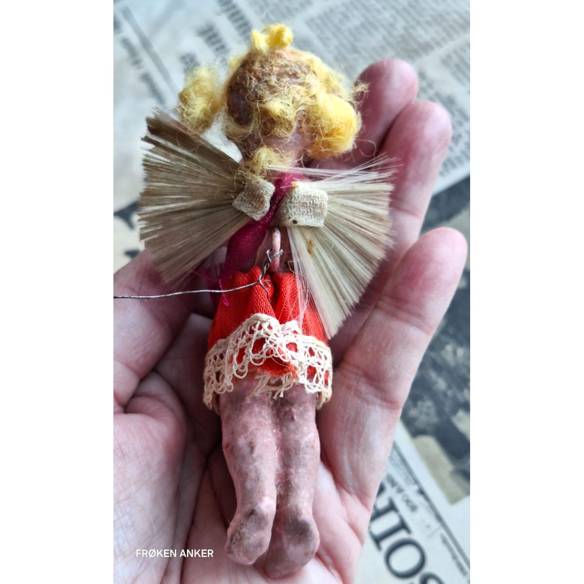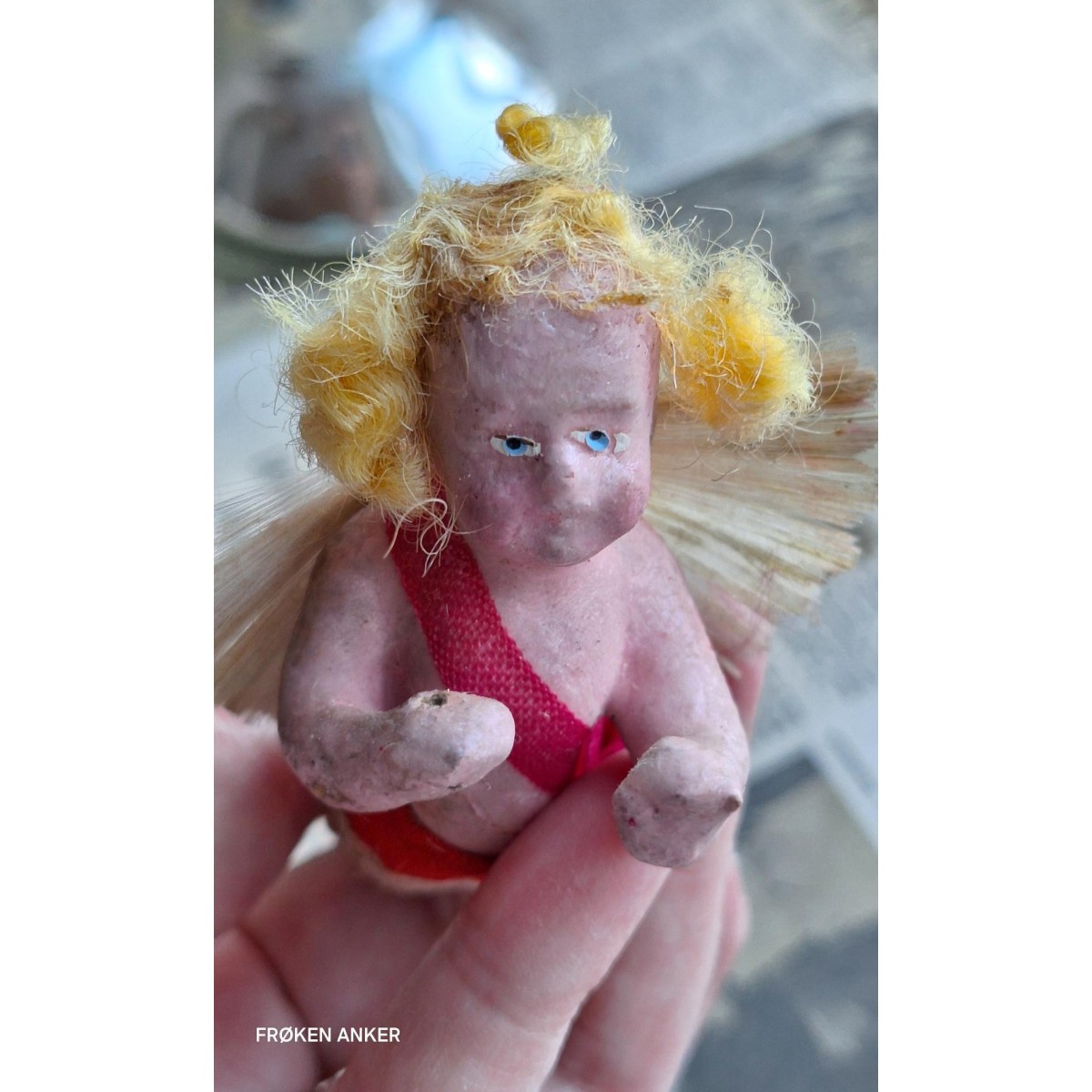 SJÆLDEN & UNIK - Den sjældne voksengel er fra omkring 1880. Englen har mohairhår, englevinger og et lille skørt...Læs mere