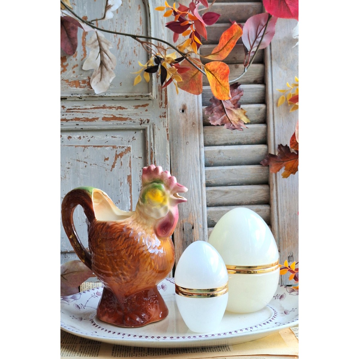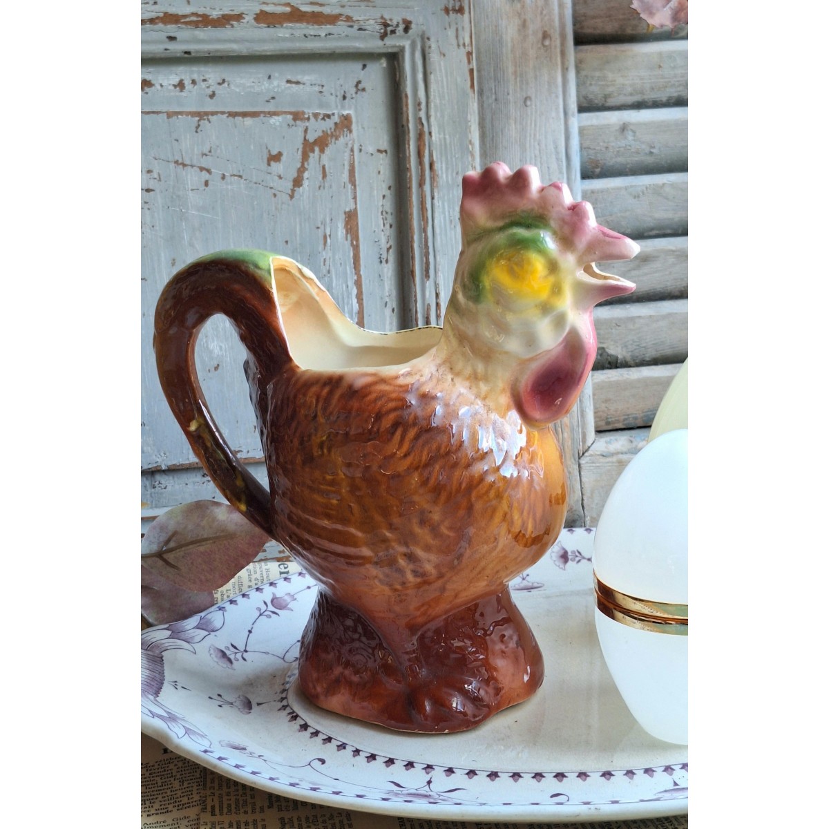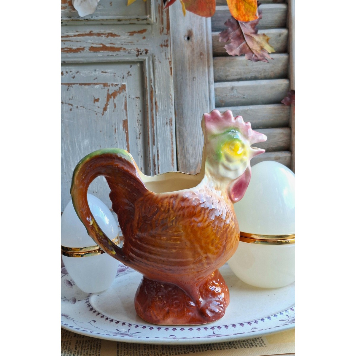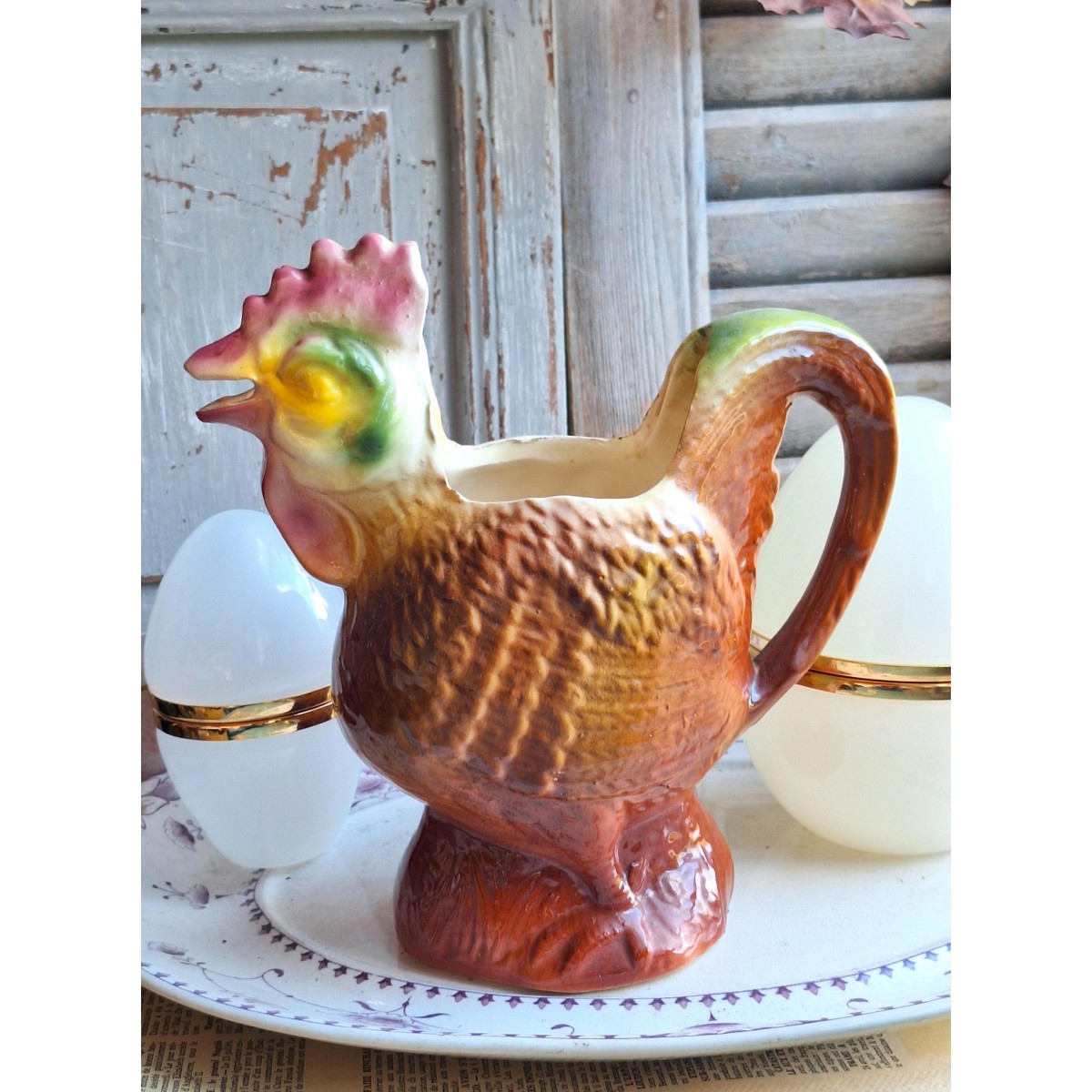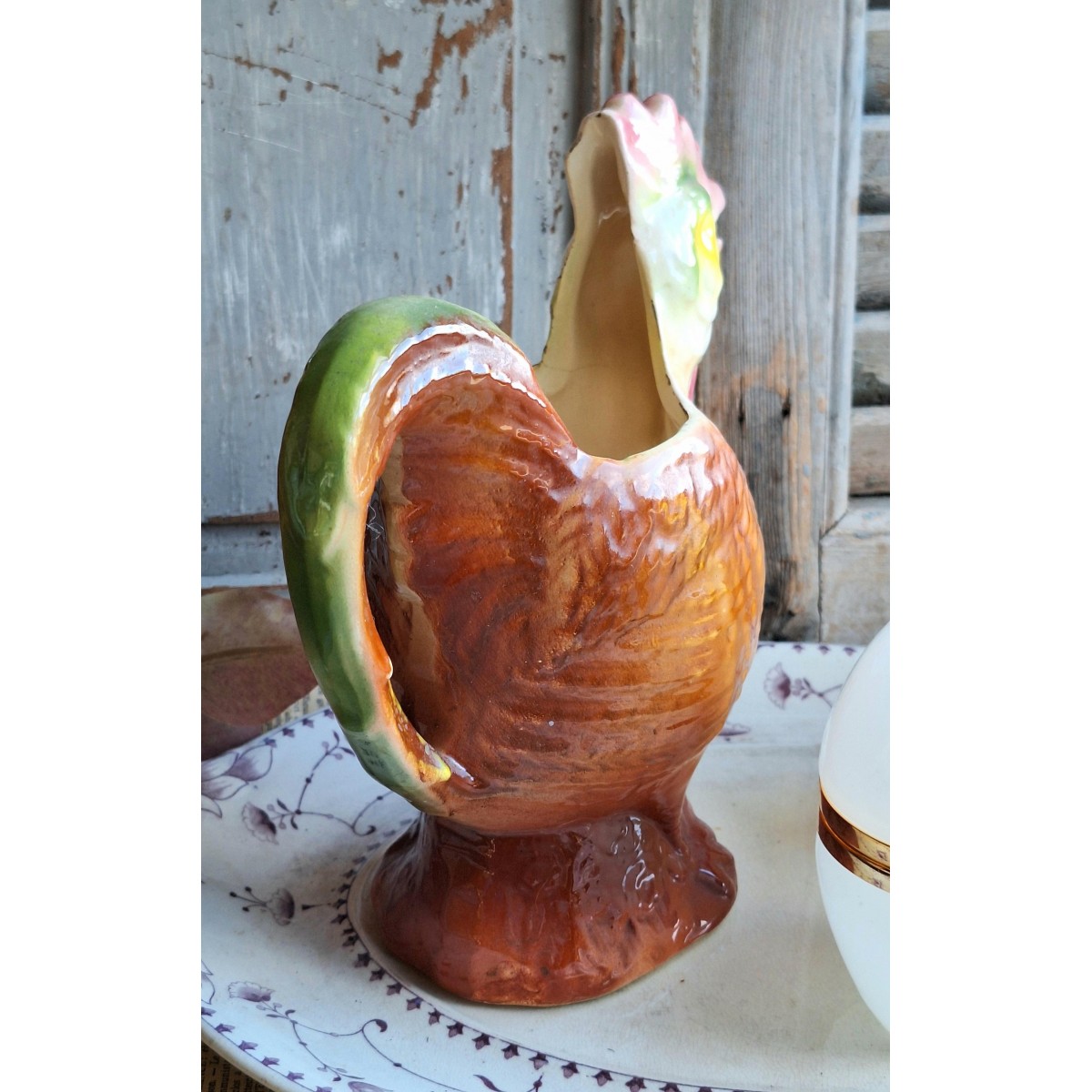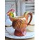 En charmerende fransk høne-kande i fine pastel-farver. Kanden er dekorativ, og er et fint indslag i borddækningen. Det er en kande, der har været brugt, men som velholdt....SE BILLEDER...Der forekommer patina.
