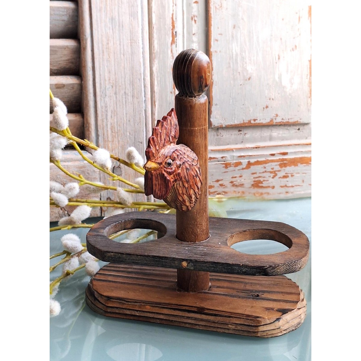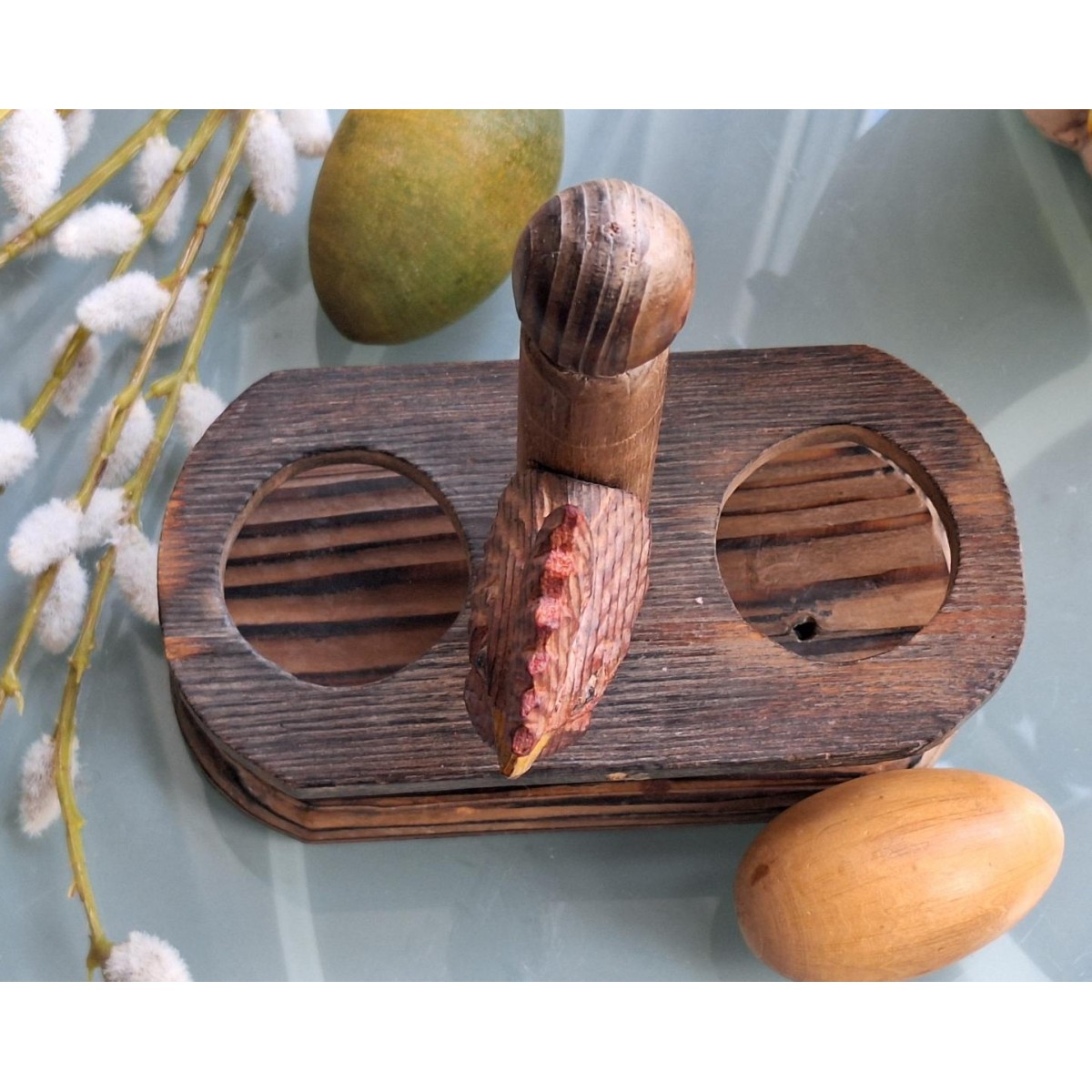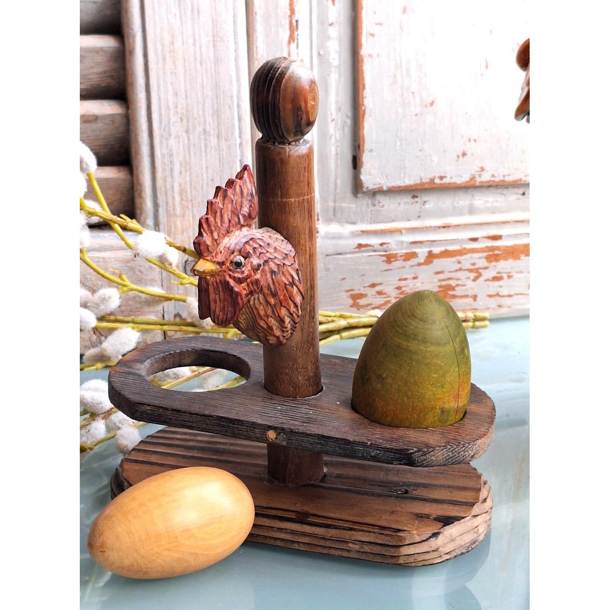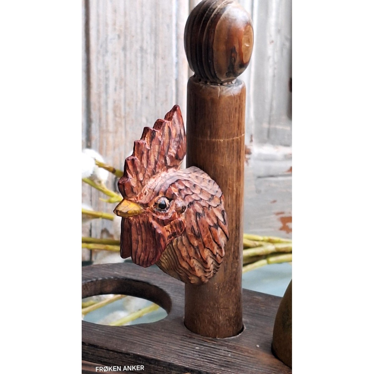 Se fuld størrelse Den primitive, gamle franske æggeholder i træ, med en hane i toppen, er så hyggelig. Der er plads til 2 æg.. Læs mere
