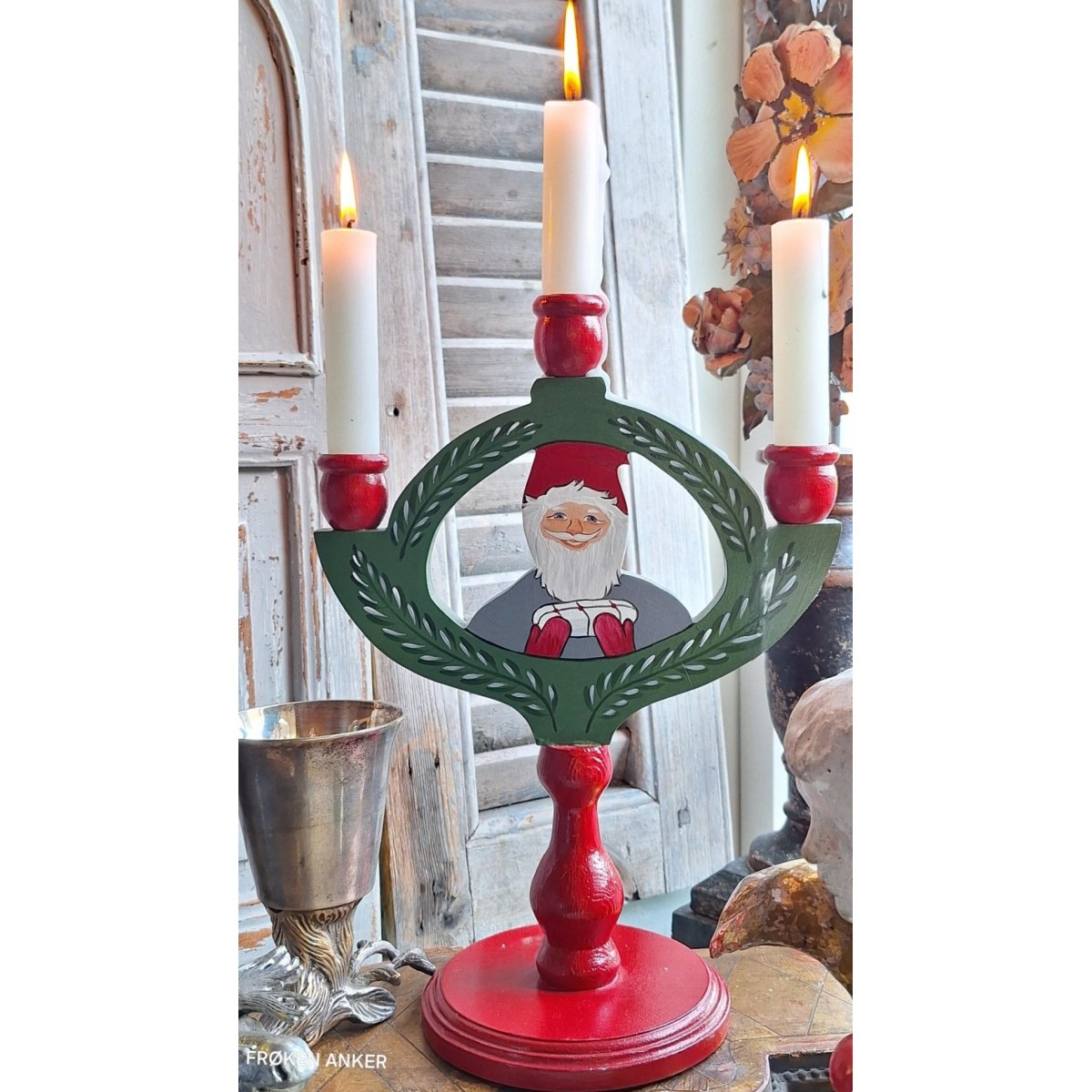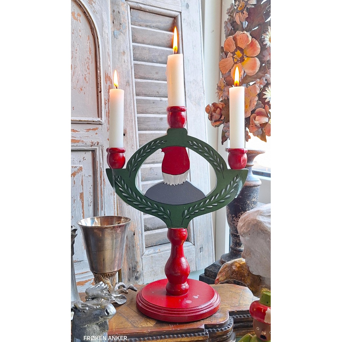 Gammel svensk julenisse lysestage i håndlavet træ, og til tre lys....Læs mere..