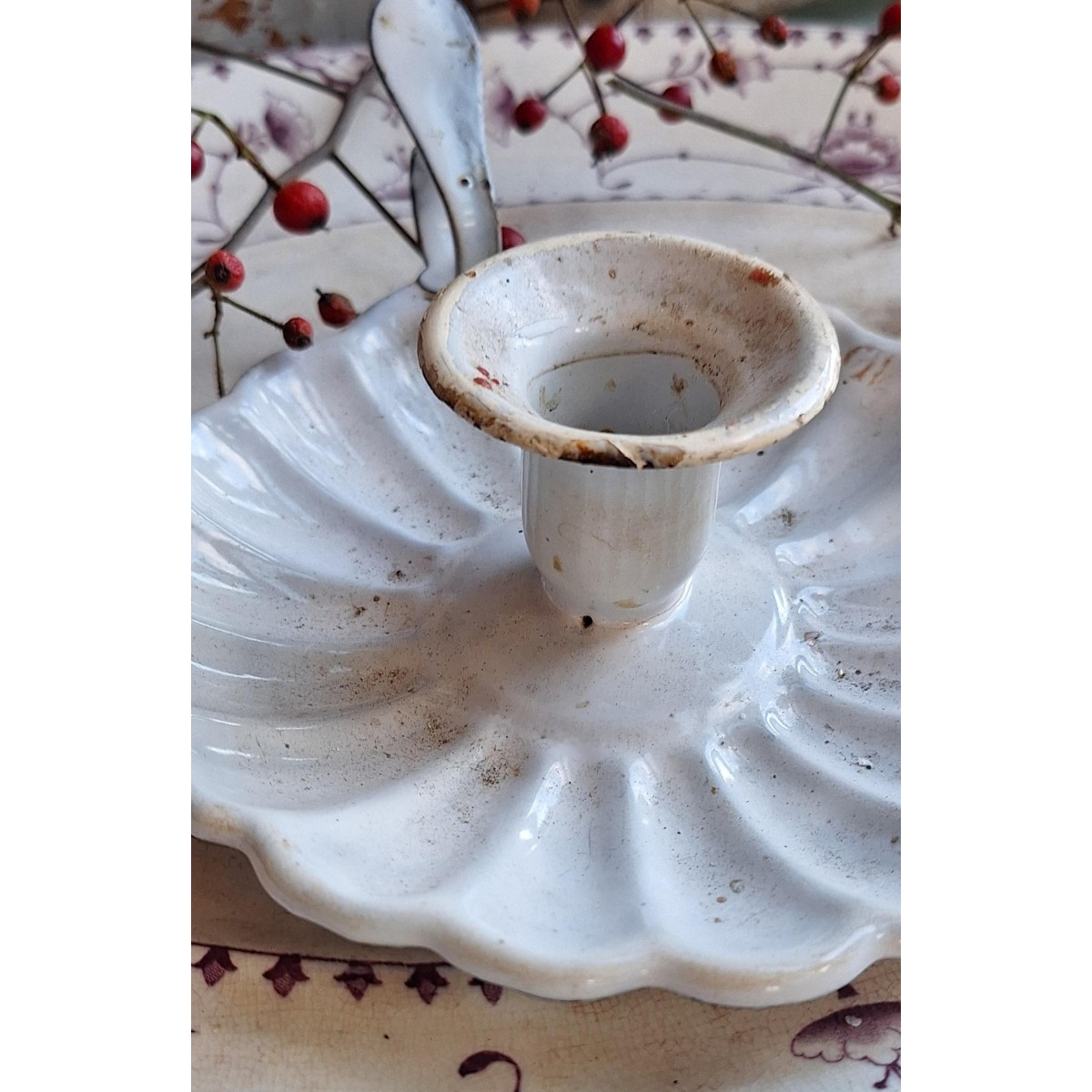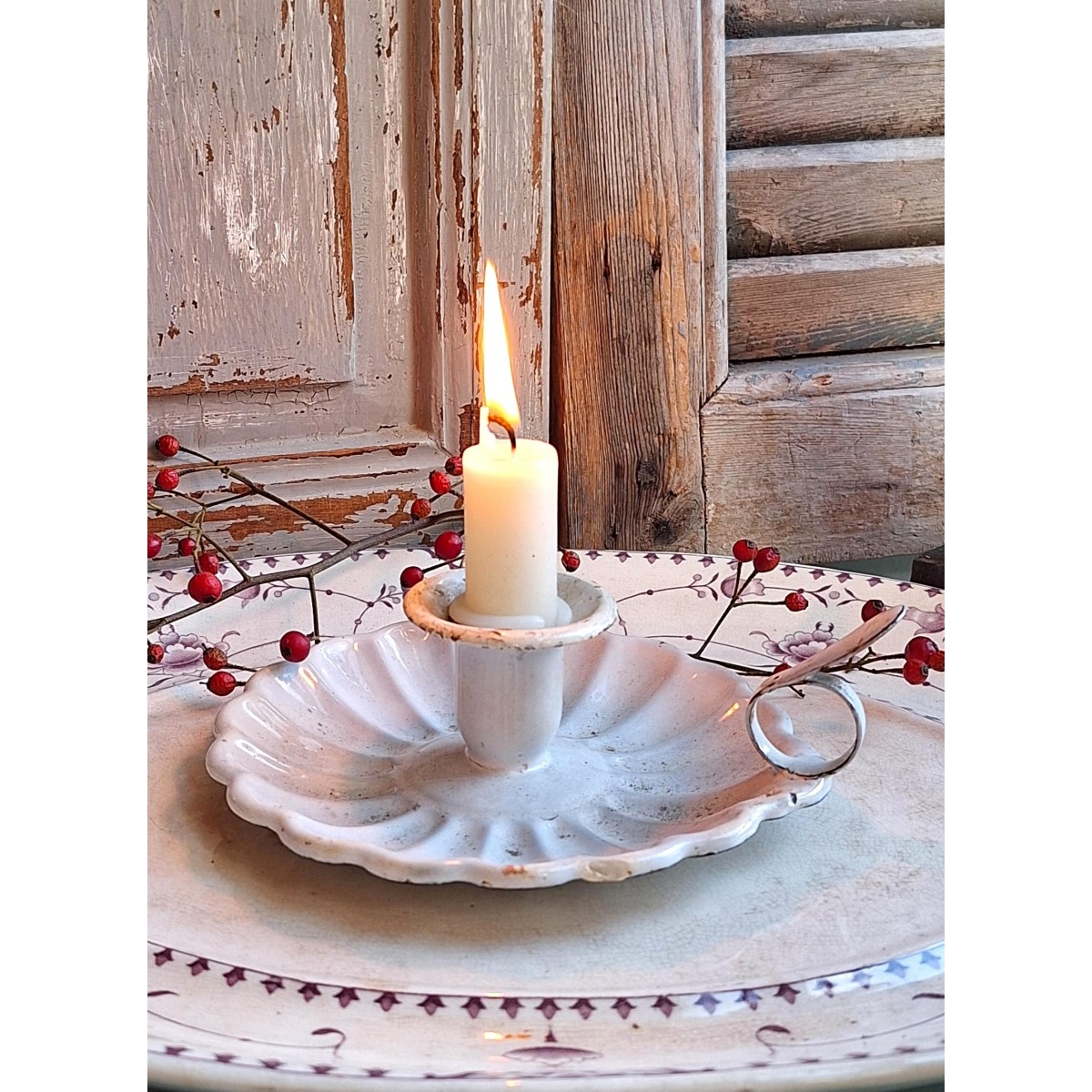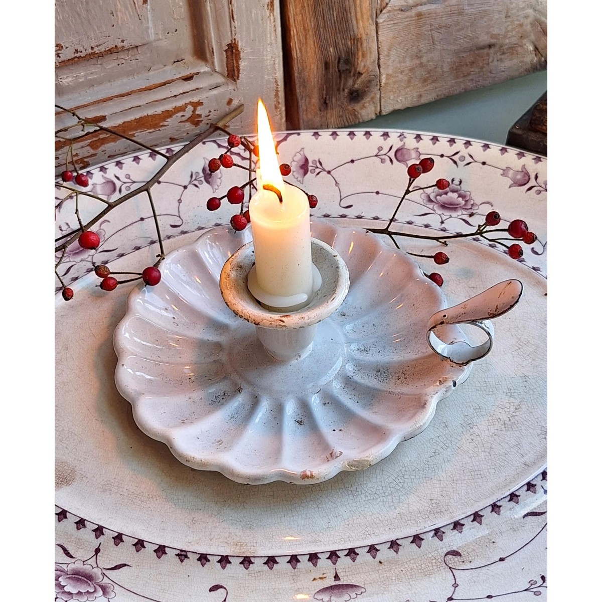 De gamle kammerstager i emalje kan vi ikke få for mange af. Med deres sjæl og orginale patina vil de pynte overalt. Den franske kammerstage i hvid emalje. Den har brugsrelaterede spor... SE BILLEDER..