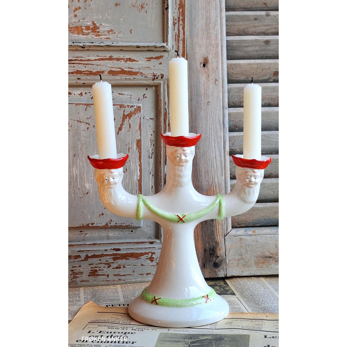 Se fuld størrelse Den gamle svenske lysestage fra Rørstrand med 3 nisseansigter - på begge sider - spreder en hyggelig julestemning..Læs mere