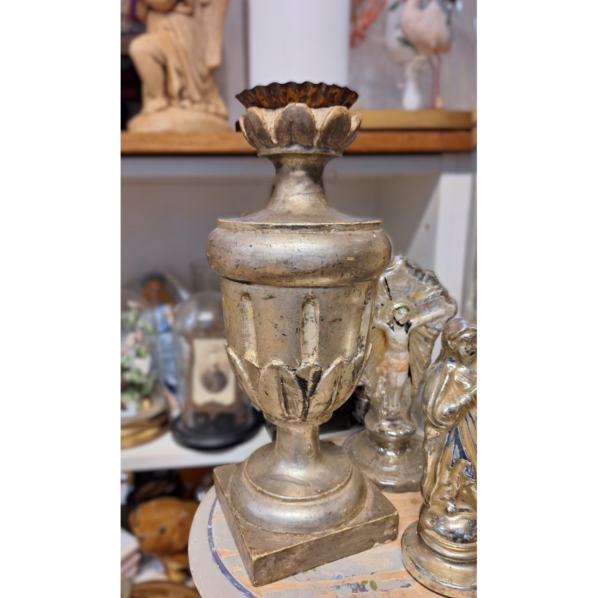 HANDMADE - Italiensk alter lysestage i træ belagt med sølv. Alterstagen er fra 1800-tallet..Læs mere