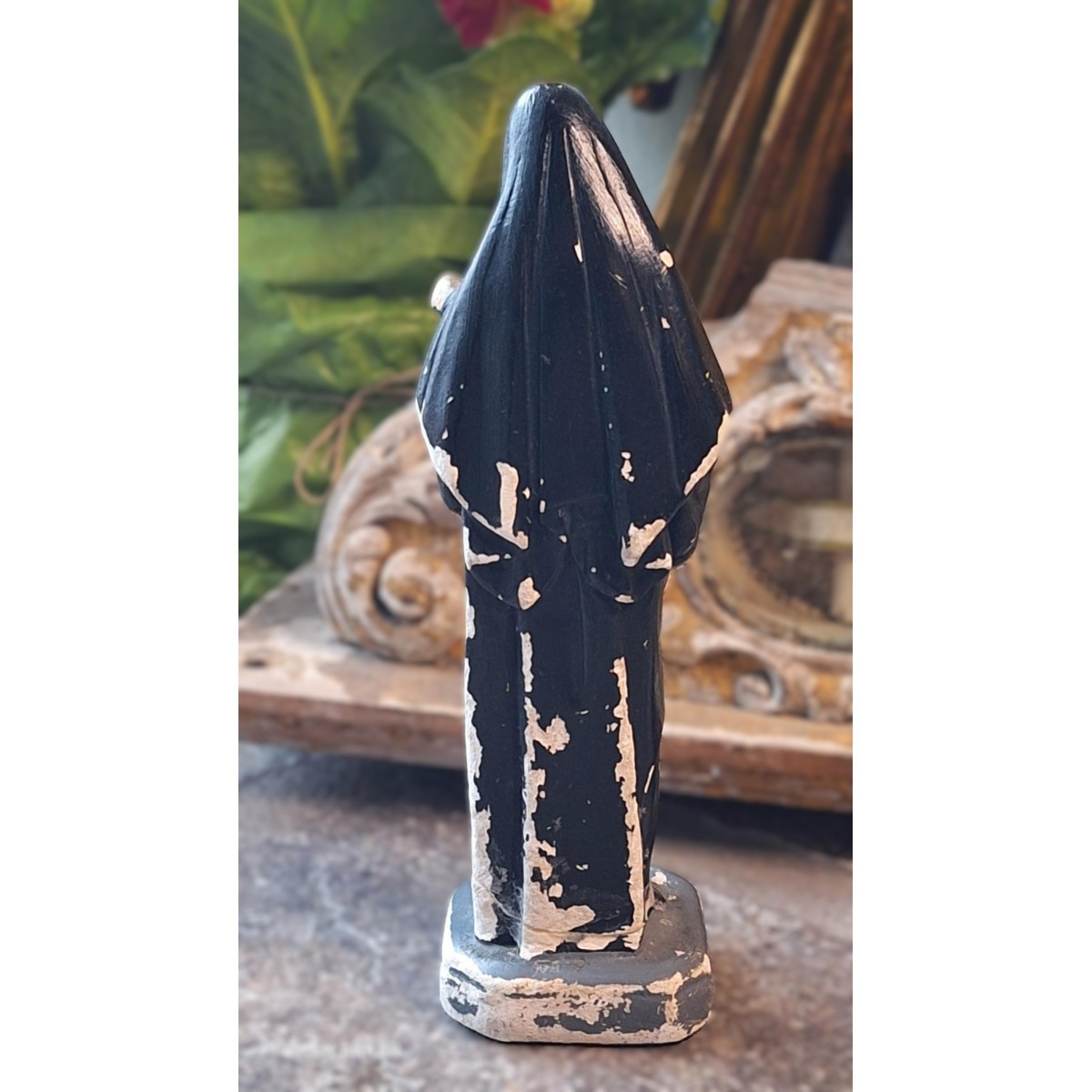 En fin gammel figur af Skt. Rita i patineret, malet gips...Læs mere..