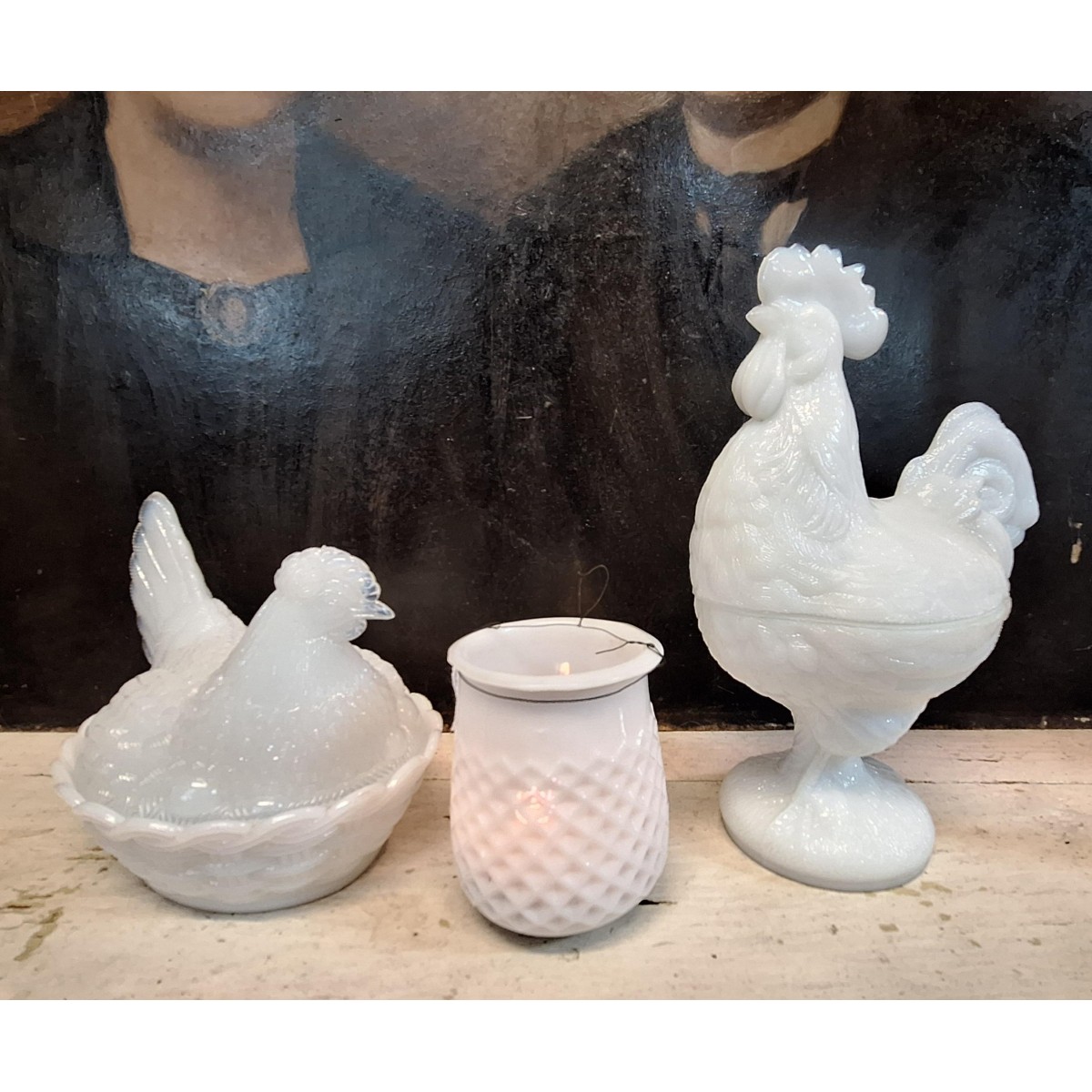 En fin antik bonbonniere høne i opal glas, og fra omkring 1920. En sød bonbonniere, der kan stå fremme såvel til påske, som året rundt. MEGET VELHOLDT...SE BILLEDER..
