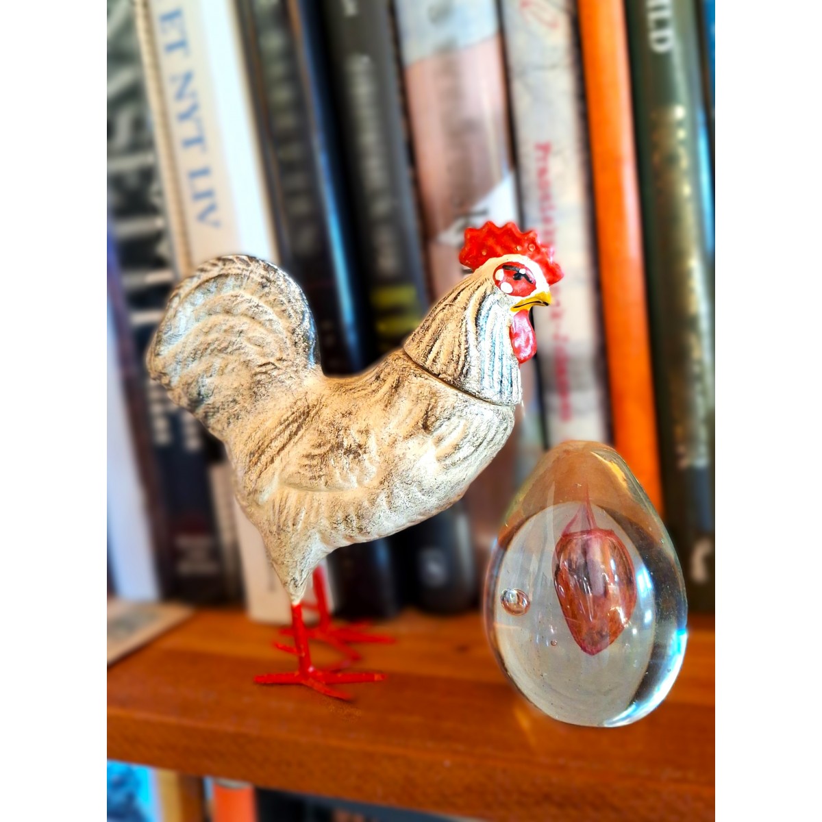Hanerne blev håndlavet, ved hjælp af gamle maskiner fra 1930'erne. Denne ældre herre er i de gamle fremstillingsteknikker med gips- og papfigurer. Kroppen er lavet af tyk gips...Læs mere.