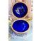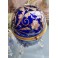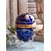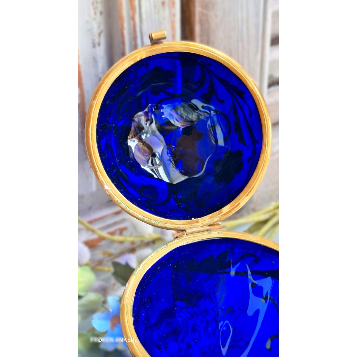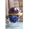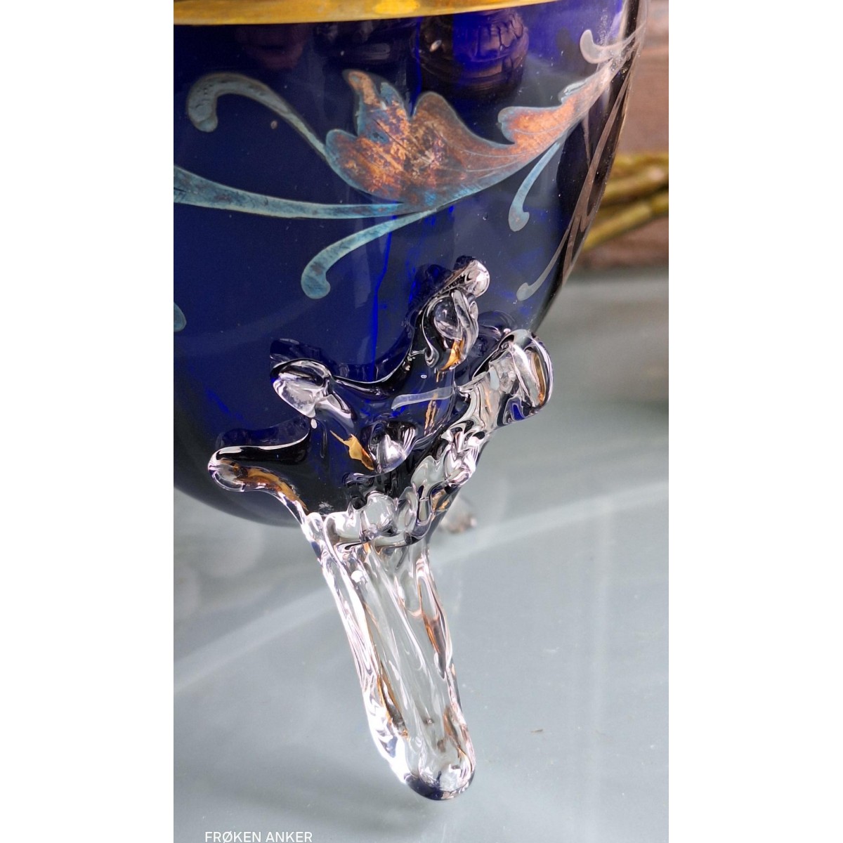 Stort ældre mundblæst glas- eller krystalæg (formentligt Murano) i midnatsblå, og med en smuk blomsterdekoration - Læs mere