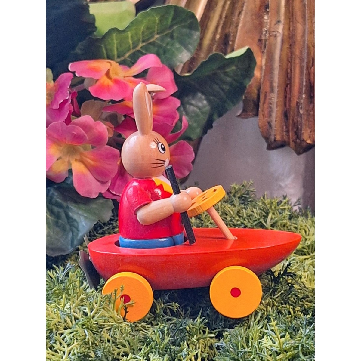 Se fuld størrelse Erzgebirge Påskehare i bil (9x8,5cm)