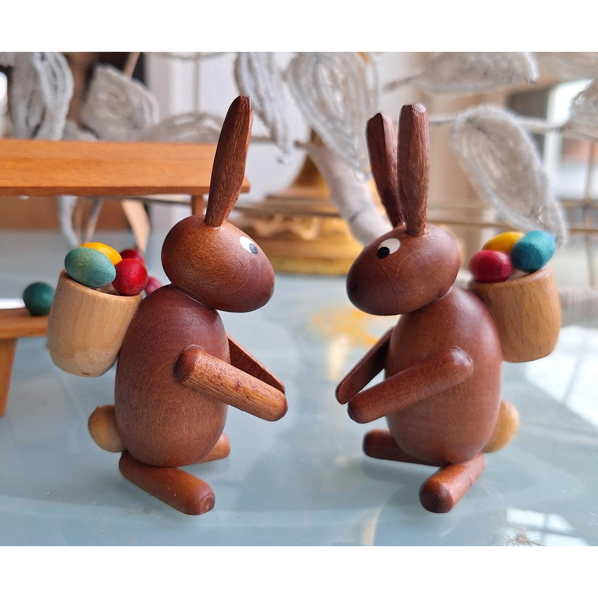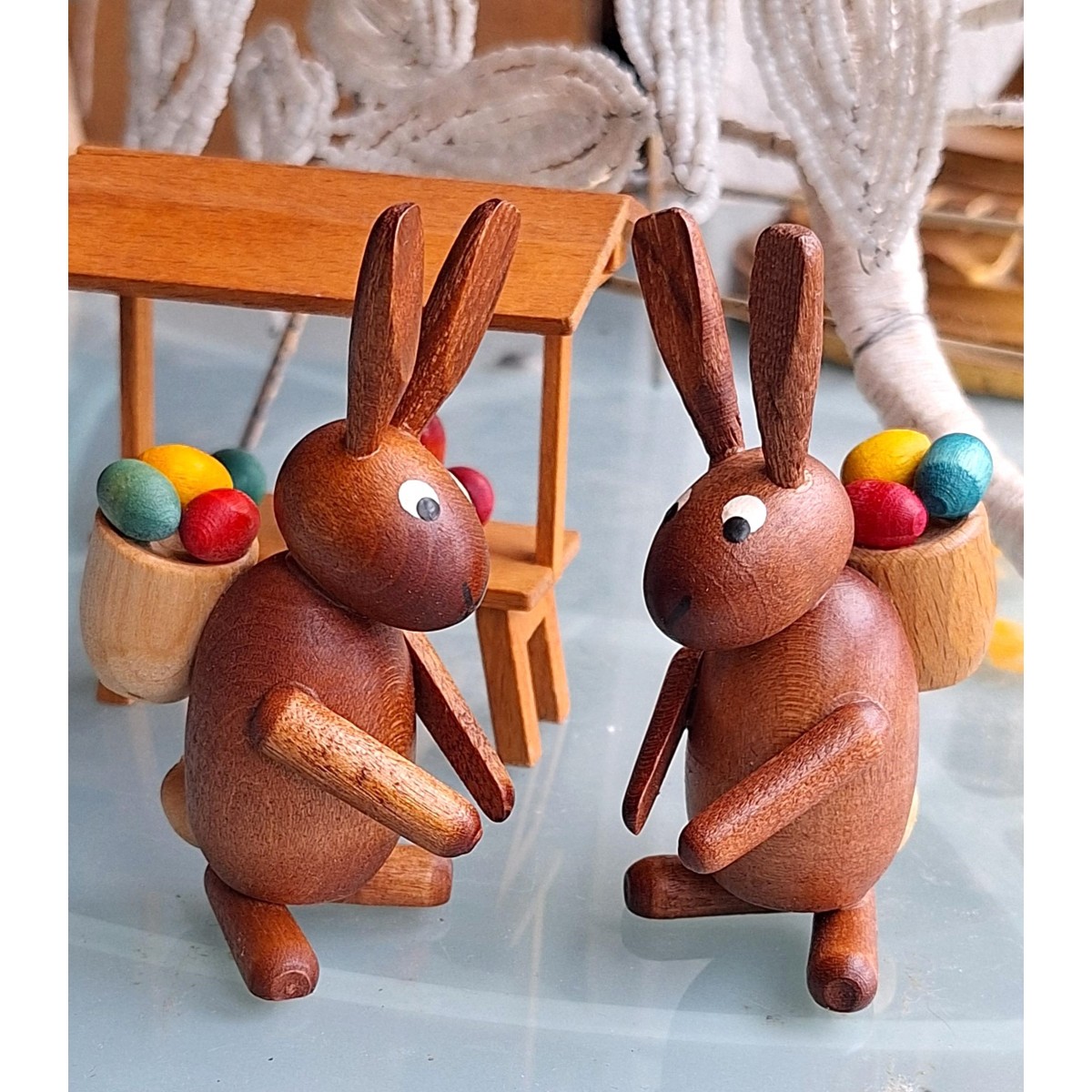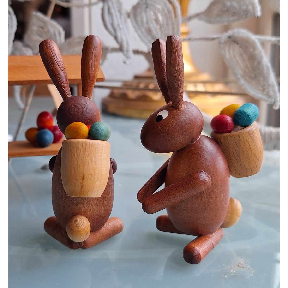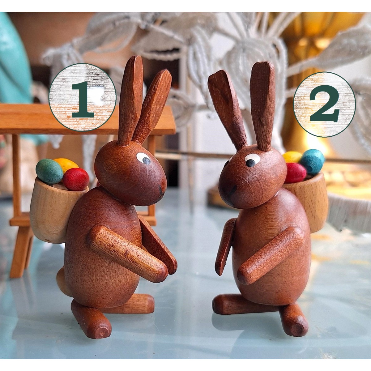 Søde ældre Erzgebirge påskeharer i malet træ. De naive udtryk, som figurerne har, fortryller os. Figurerne er meget velholdte, med fine detaljer...SE BILLEDER..PRISEN ER PR. STK