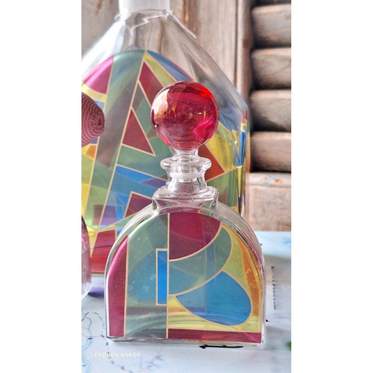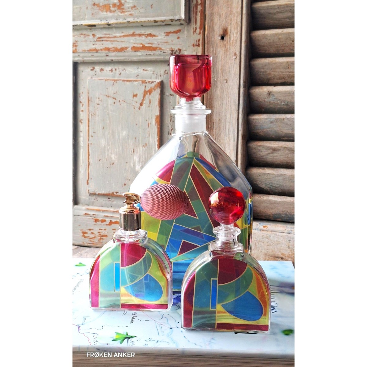 Gammelt parfume-sæt i Art Deco-stil. Der er 3 flakoner, i forskellige højder. De er velholdte, og meget dekorative. Brugspatina kan forekomme.