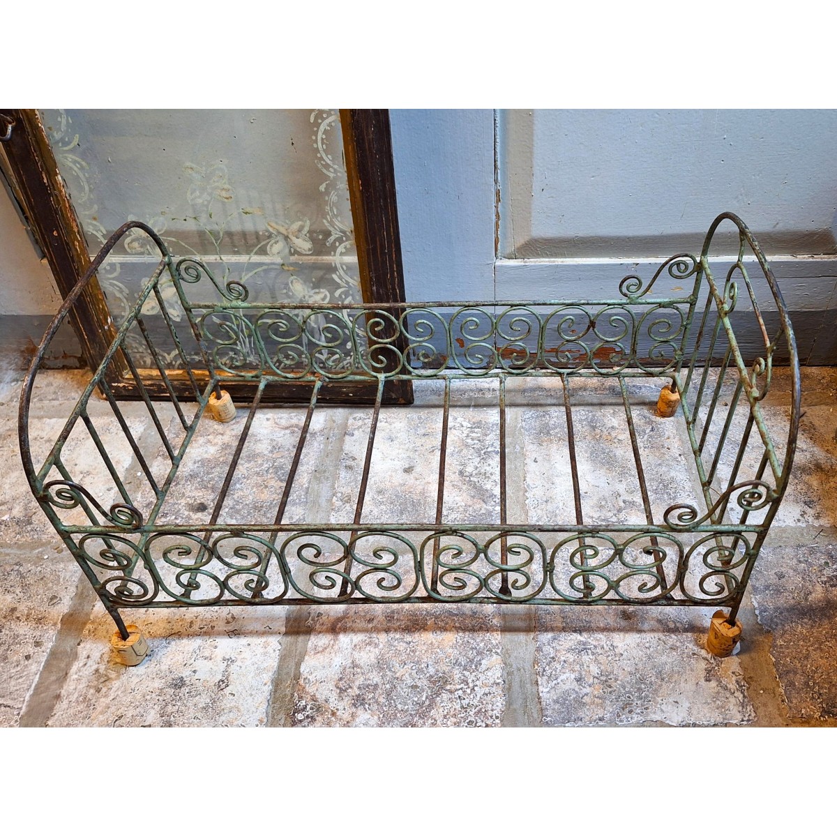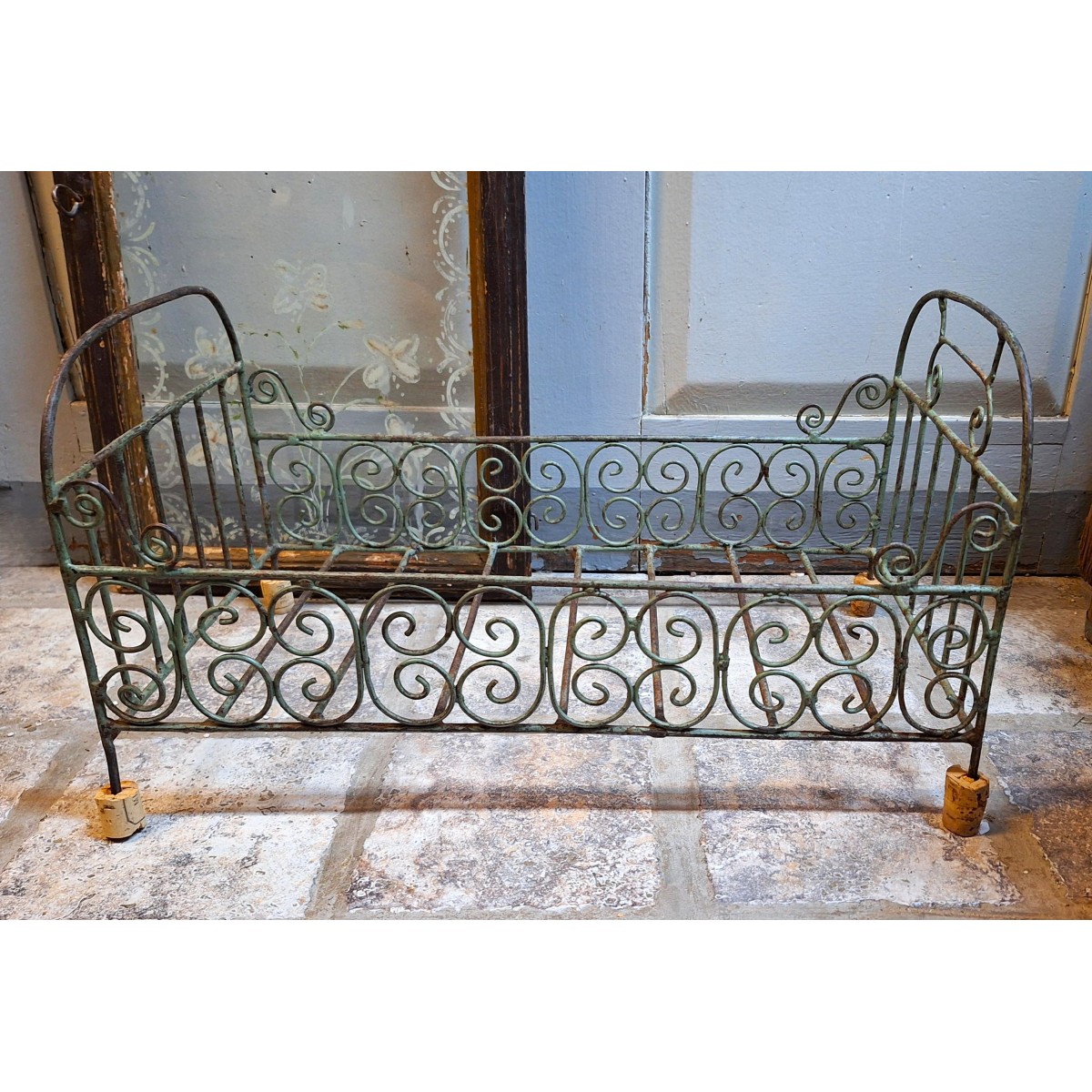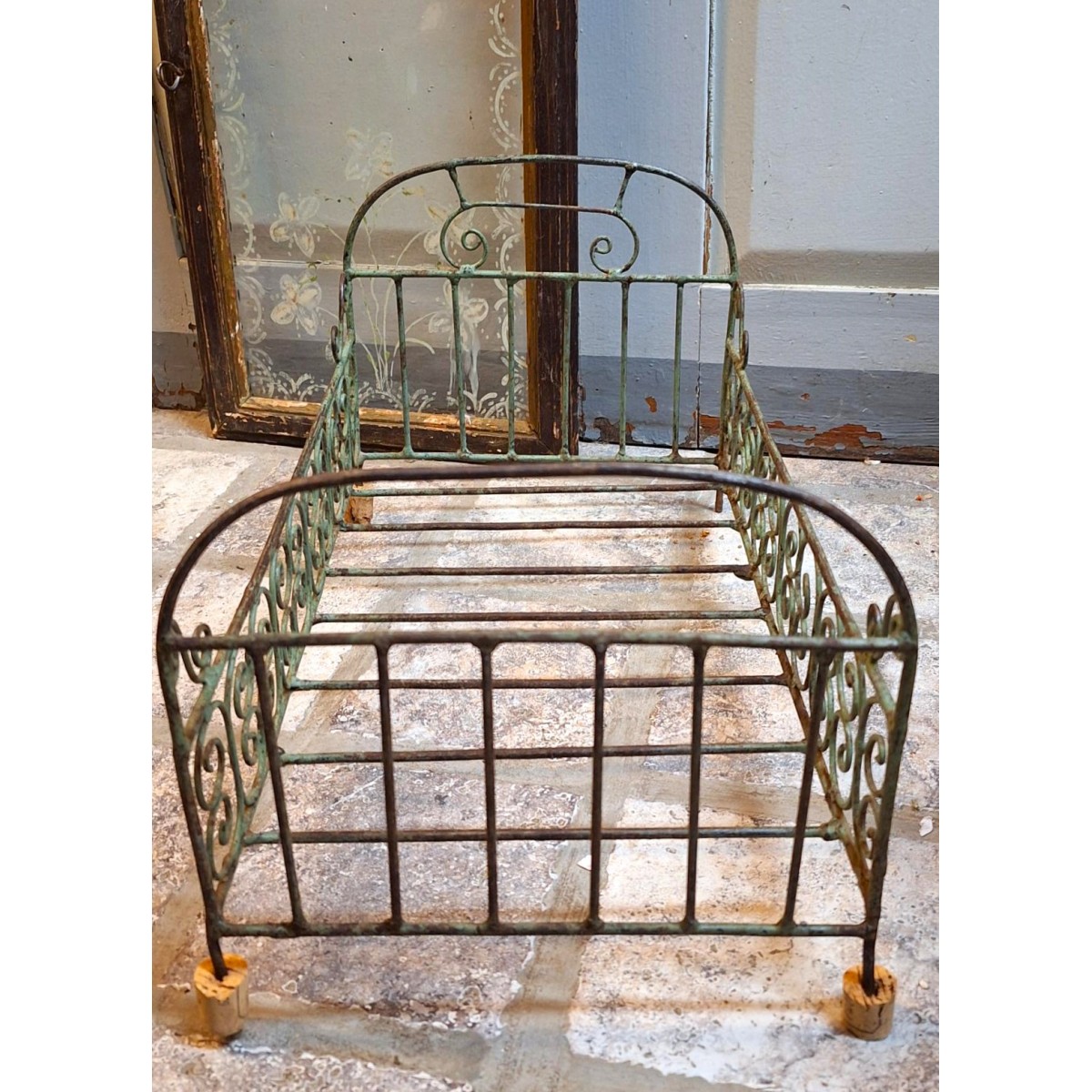 Gammel Fransk Dukkeseng i malet Jern (H25x46cm)