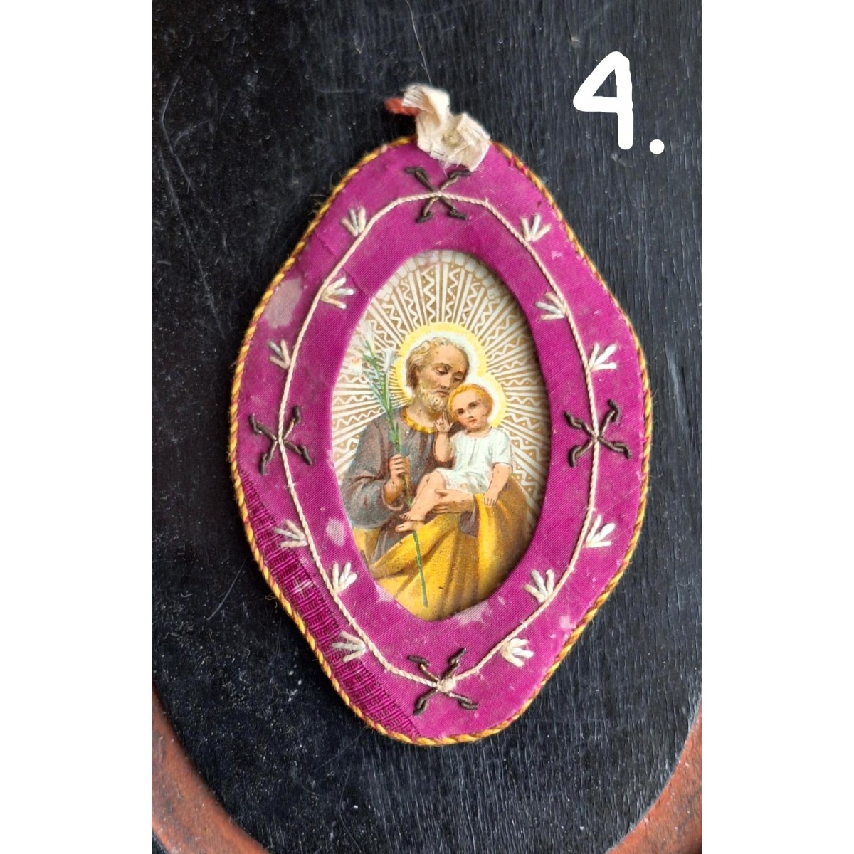PR. STK - Gamle håndlavede klosterarbejder/relikvier, til bøn. Bag glasset er en helgen i hvert billede. Rammen er broderet, eller smukt dekoreret med metal pynt. Der er brugsspor fra brug - SE BILLEDER