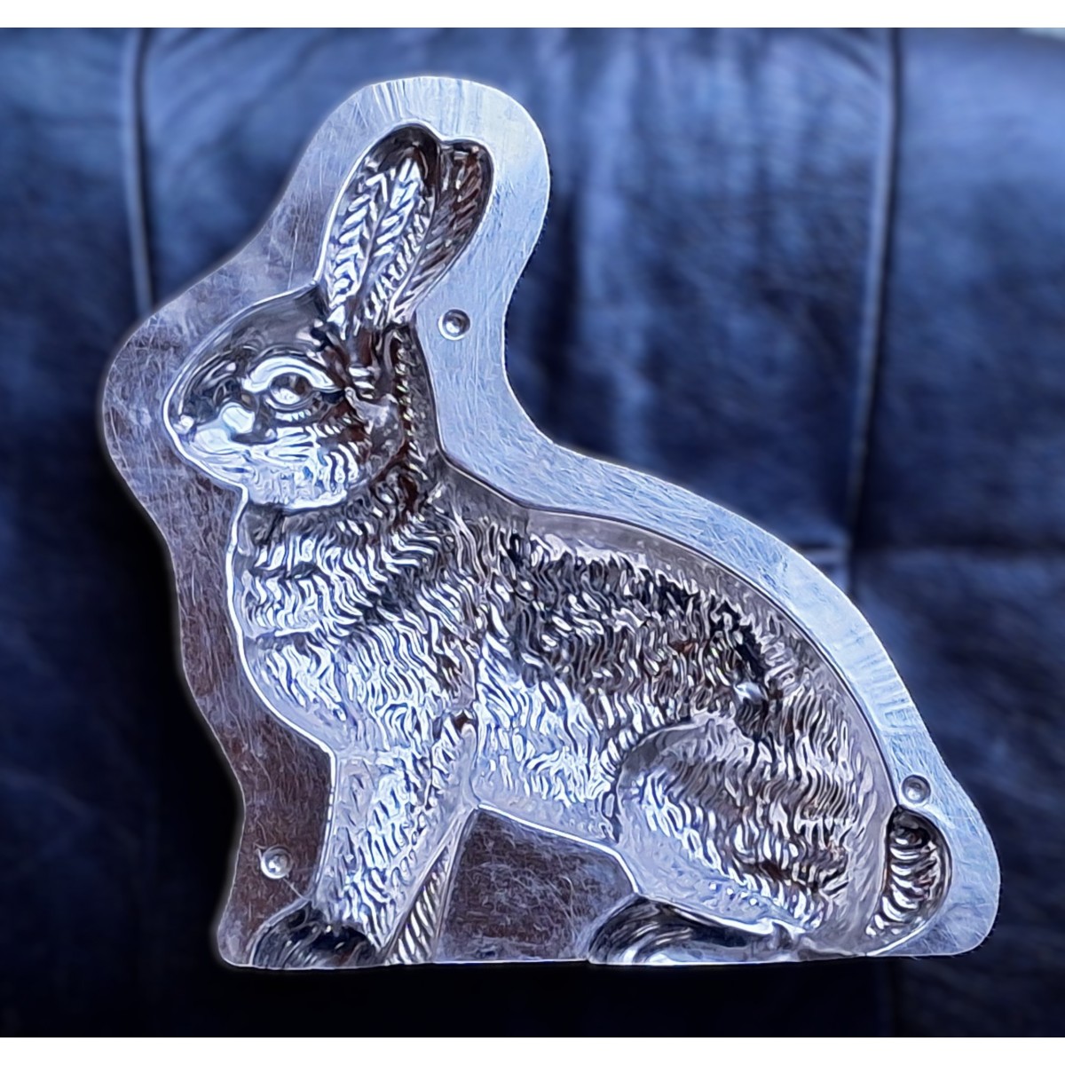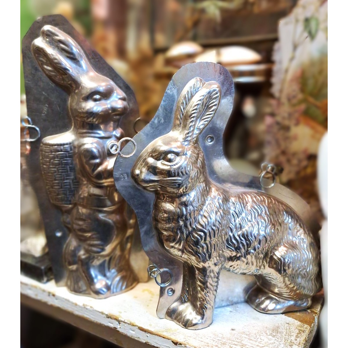 En ældre, meget stor, chokoladeform, der er formet som en siddende hare. Formen er meget velholdt, uden diverse brugsspor. Den er købt brugt fra en belgisk konditor - SE BILLEDER..Almindelig brugspatina kan forekomme