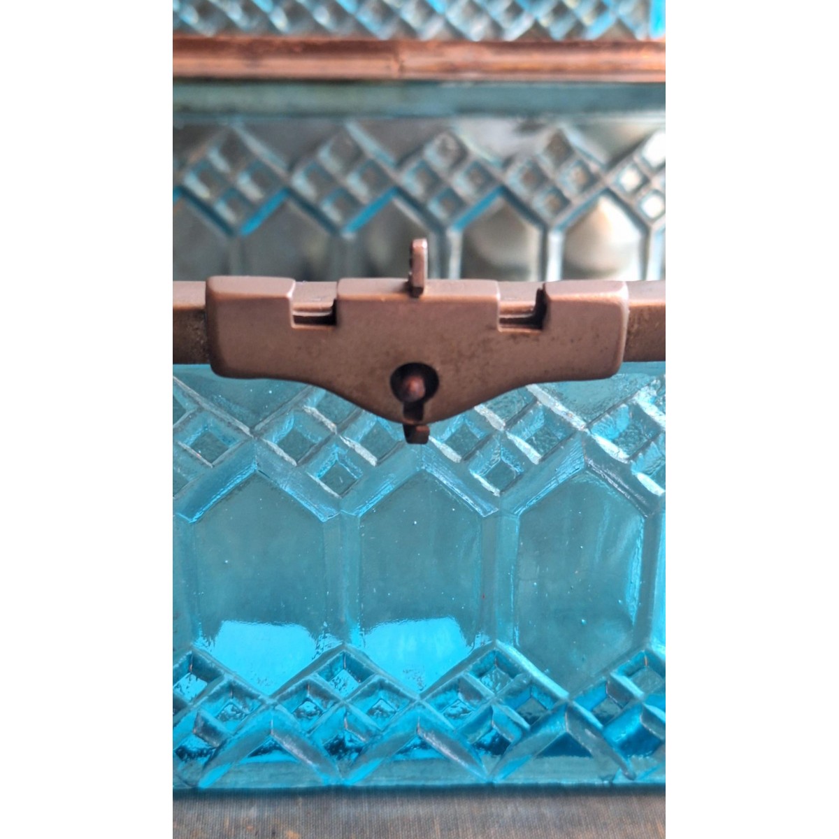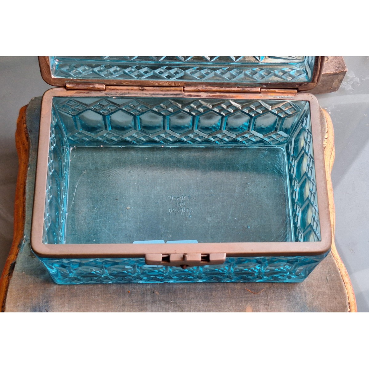 Se fuld størrelse Antikt Glasskrin Lågskrin med Metalkant Turkis [Maltsov] 1911