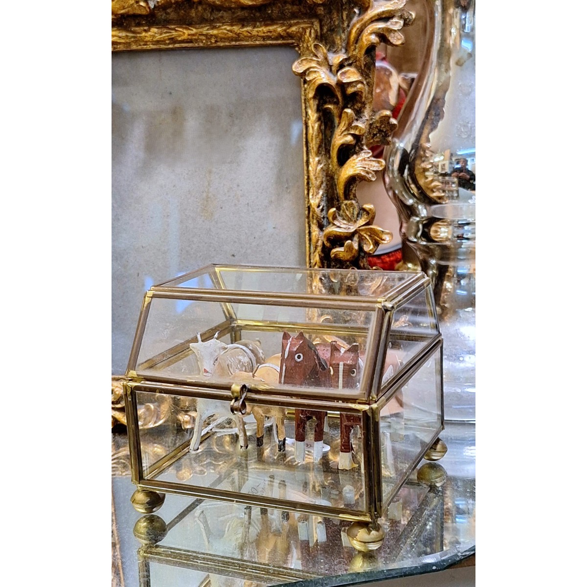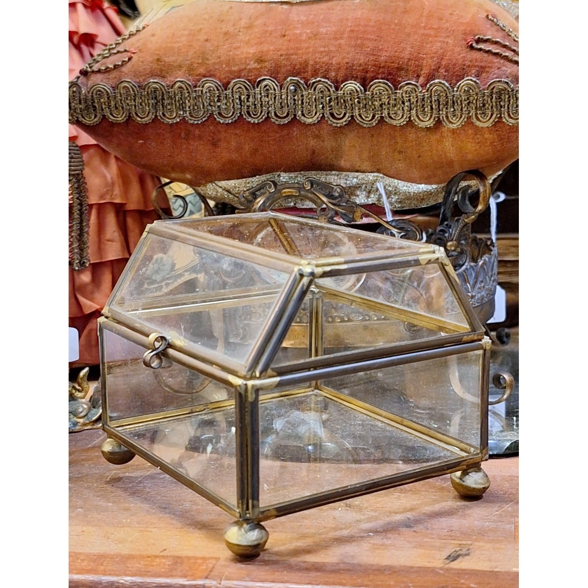 En meget smuk, og velholdt, fransk smykkeæske i glas og messing...Læs mere