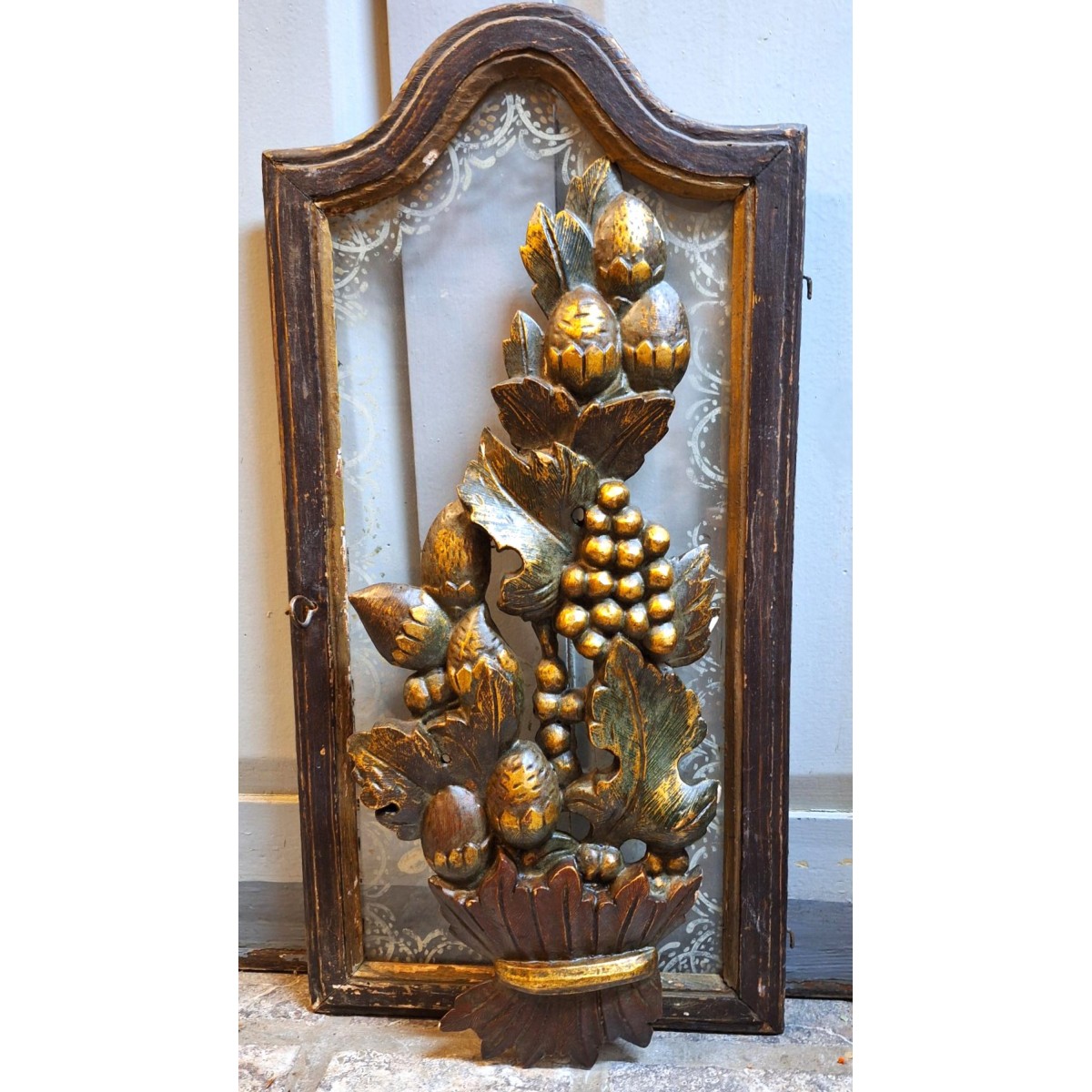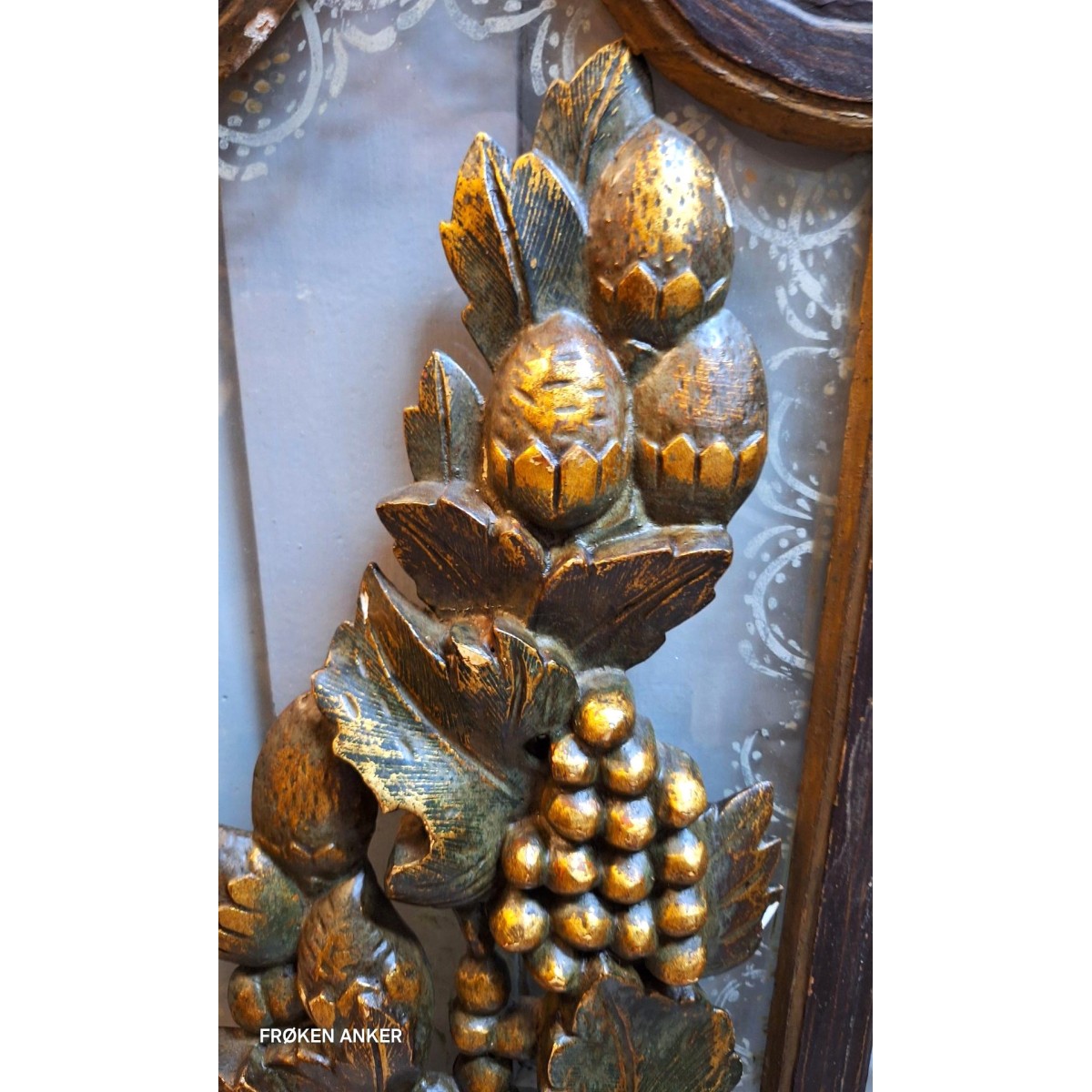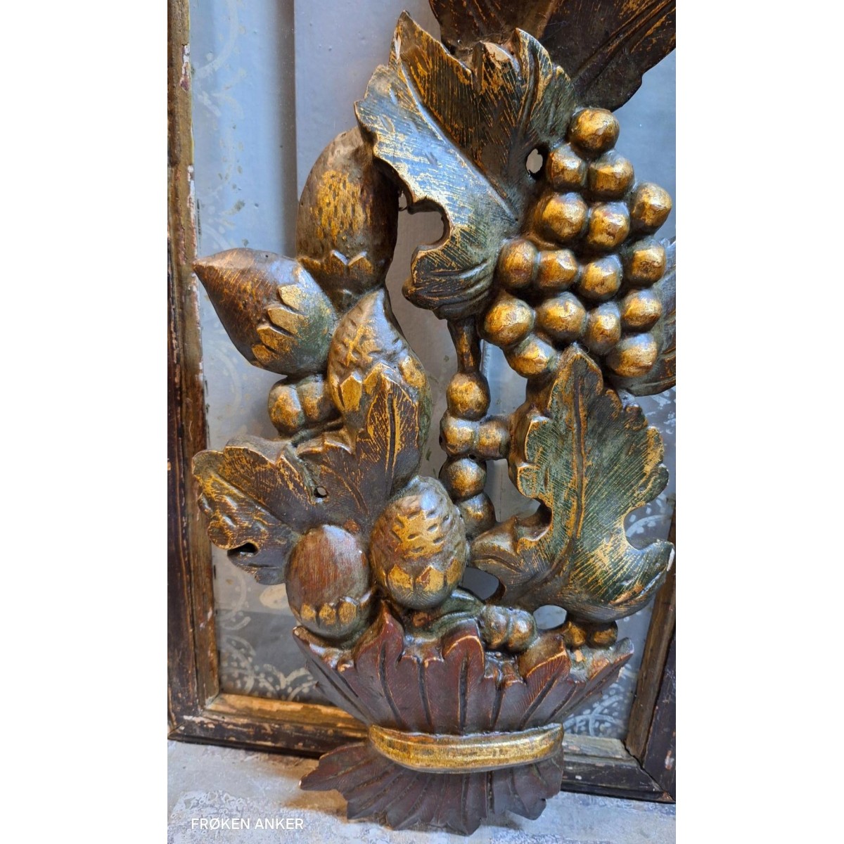 Antik fransk Bois Doré, forgyldt og malet træ. Den er med ophæng bagpå. Den er smukt udskåret med druer og blade. Meget flot og dekorativ...SE BILLEDER..aldersbetinget brugsspor forekommer.