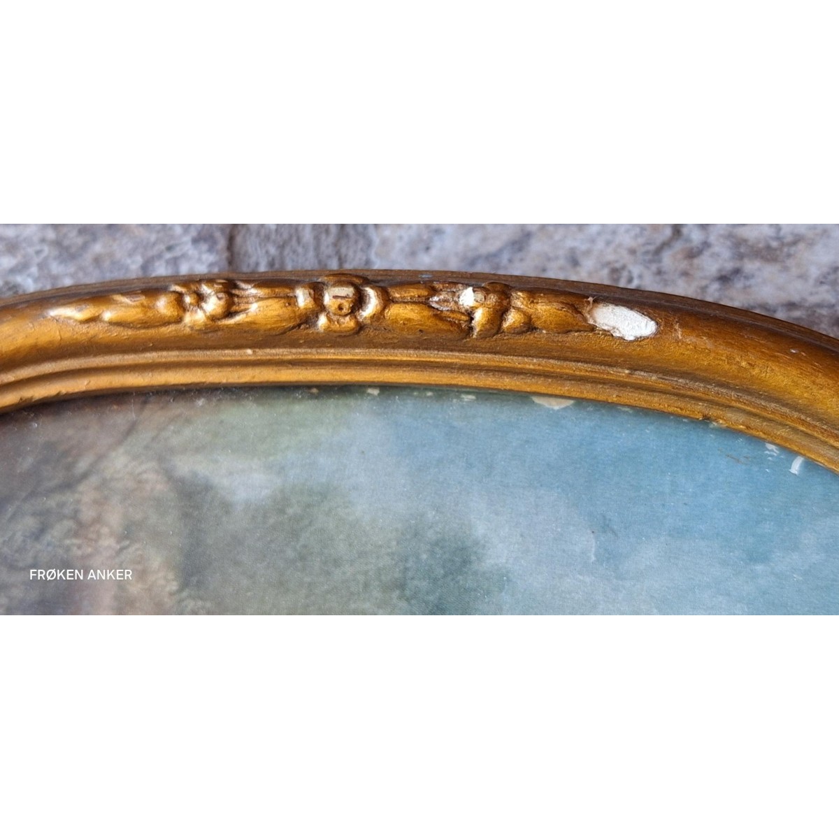 Det yndige billede har et sødt romantiskt motiv. Det er indrammet bag glas, i en forgyldt træramme - læs mere