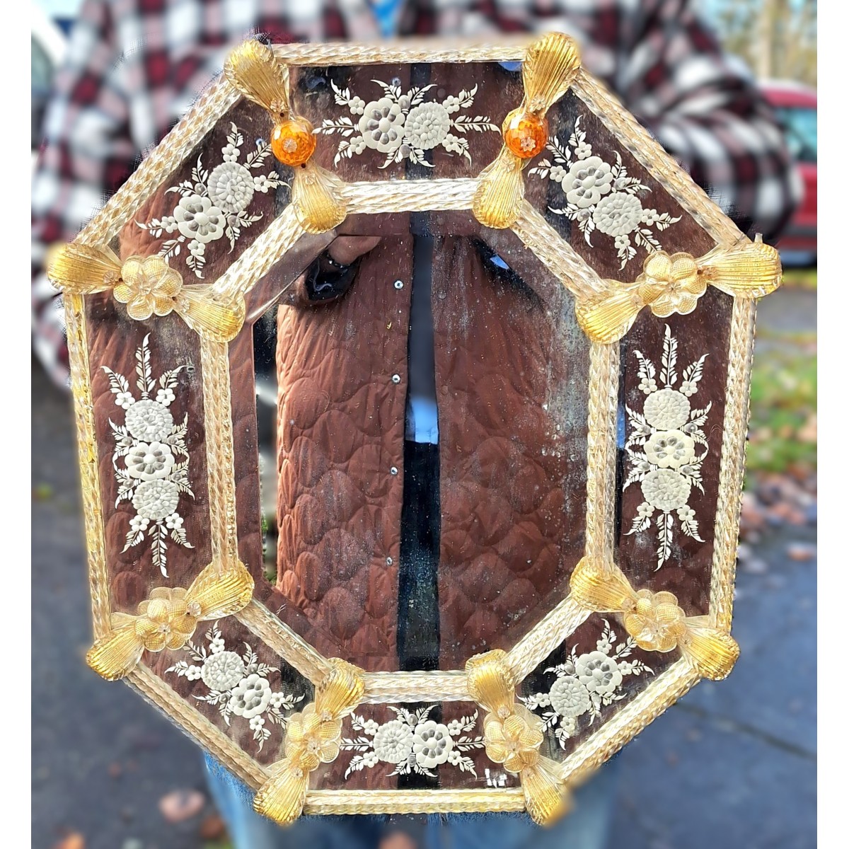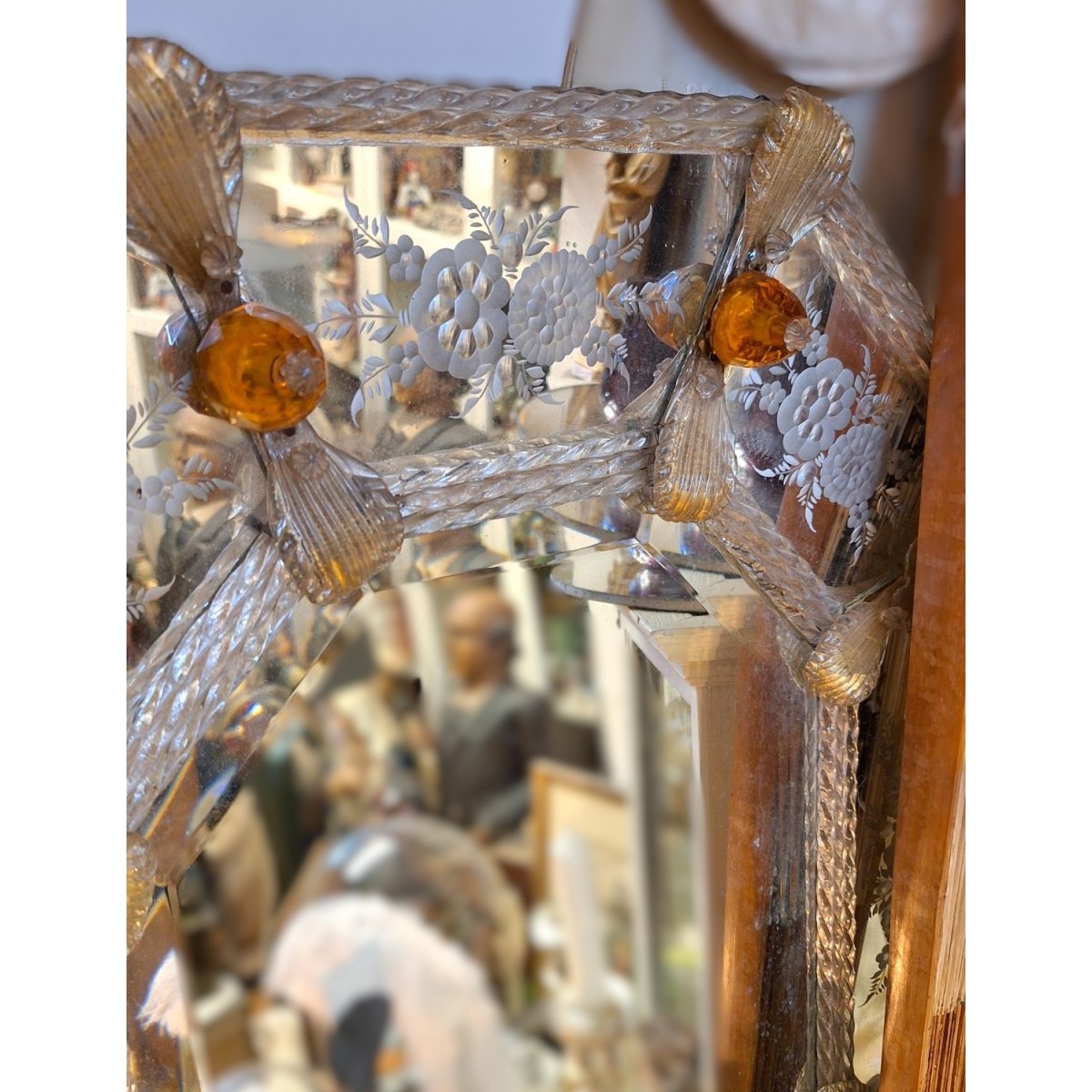 Se fuld størrelse Gammelt Venetiansk Spejl Præget Kant [51x61cm] Ravfarvet 'Knapper'
