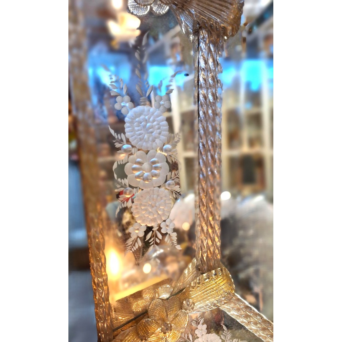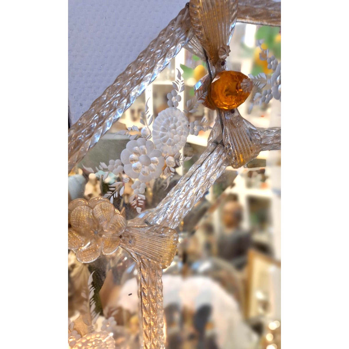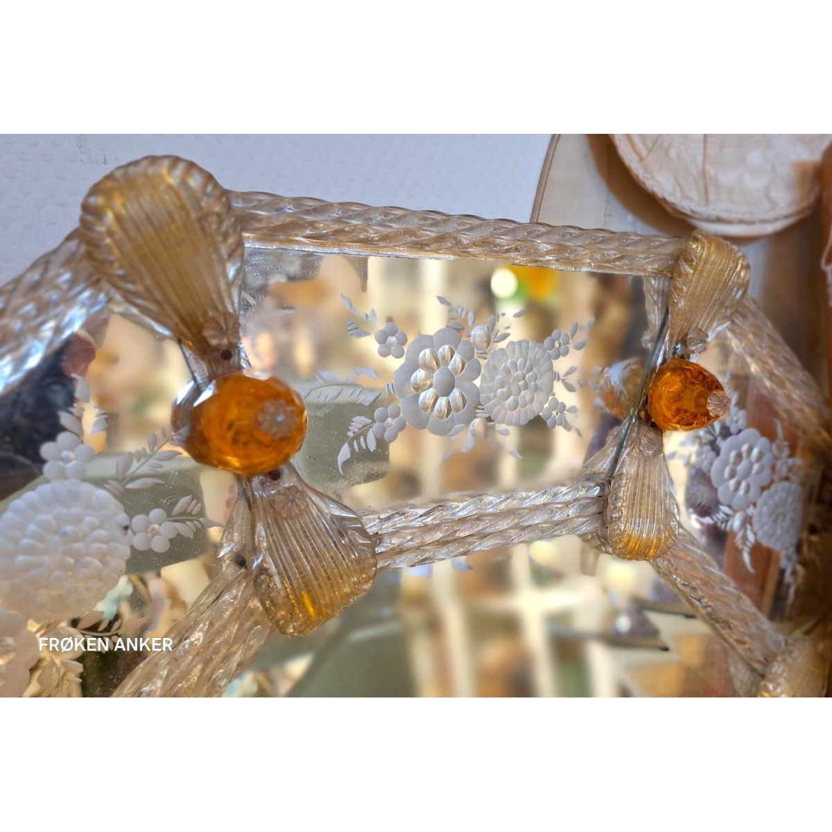 SKAL LEVERES / AFHENTES - Et meget smukt, og meget gammelt venetiansk spejl. Spejlet er med en præget kant....Læs mere