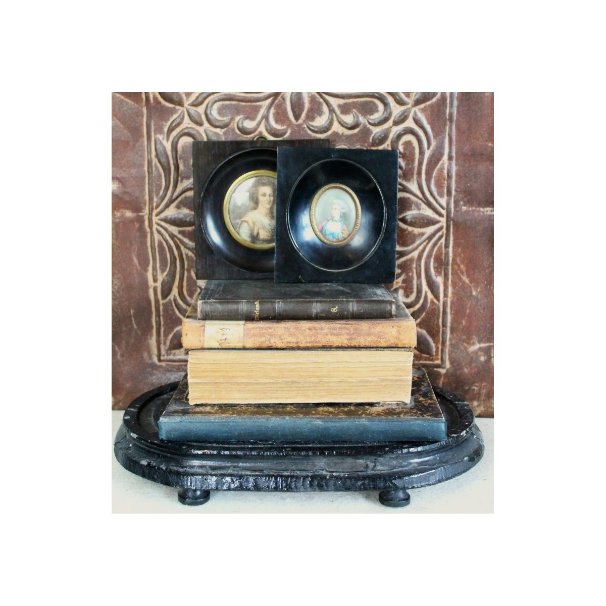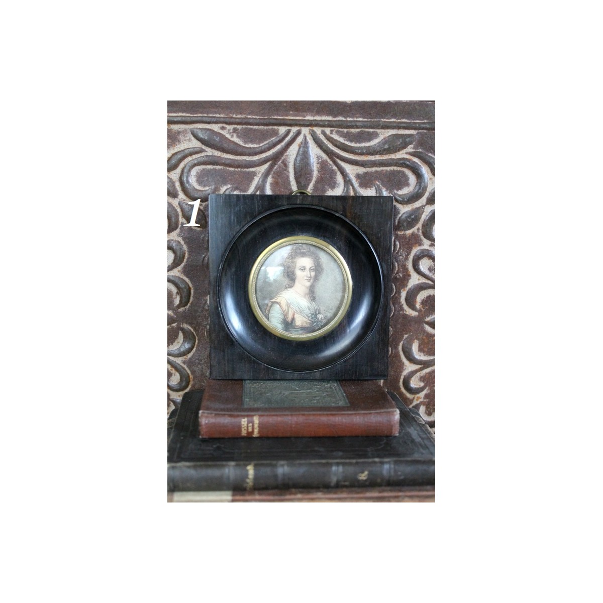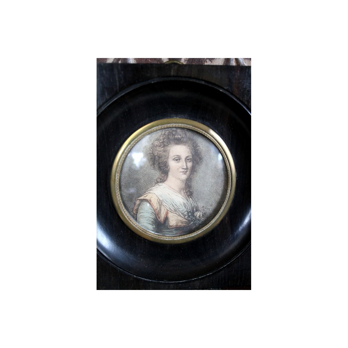 De små og gamle miniature billeder er meget populære blandt samlere. Billederne er i mørke passepartout-rammer, der trækker blikket mod motivet. Der kan forekomme lidt brugspatina i rammen. PRISEN ER PR. STK.