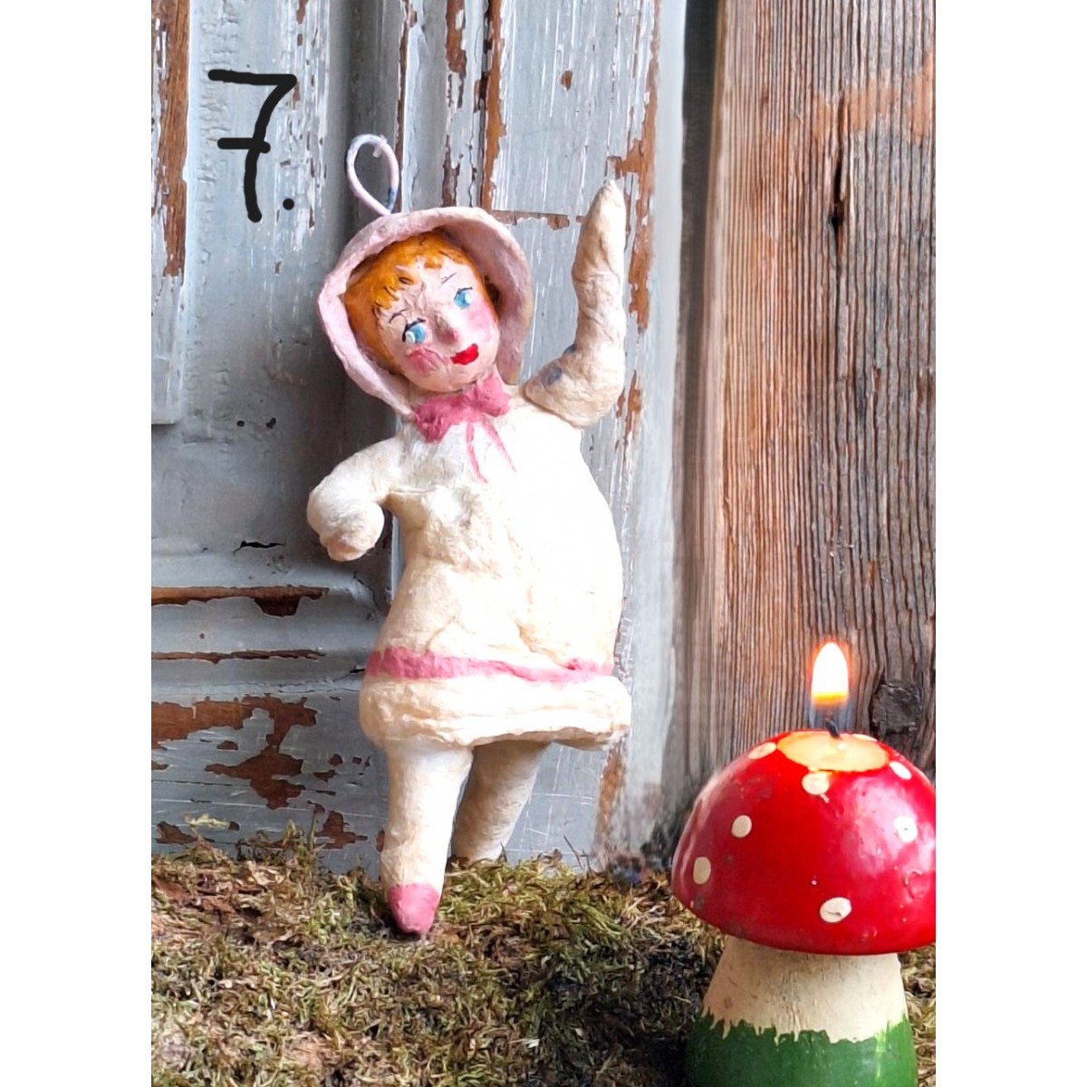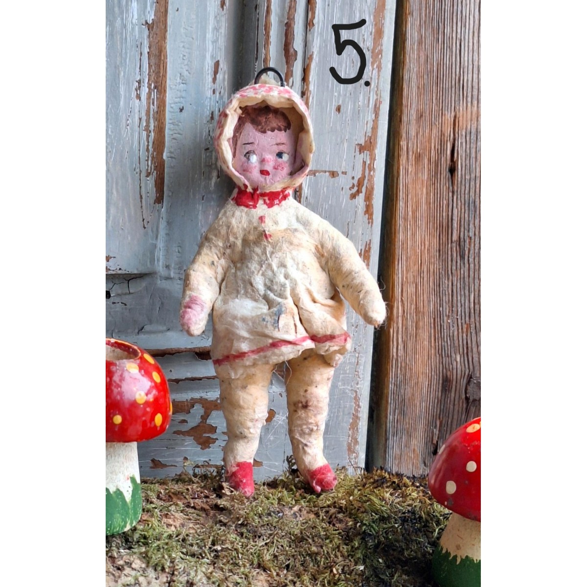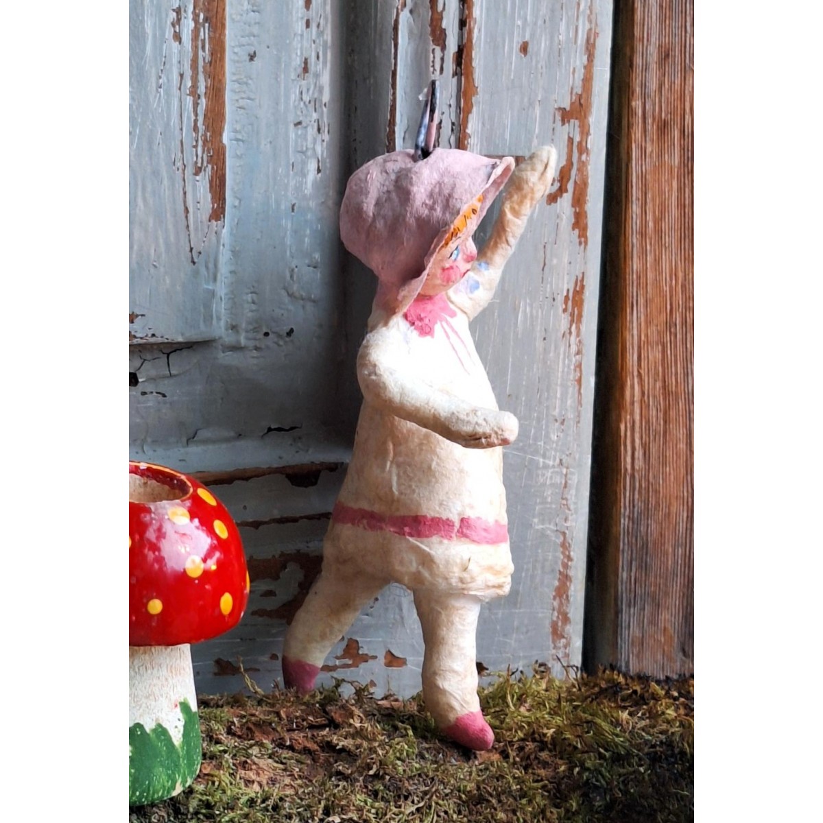 Så yndige figurer i presset vat fra 1930/40'. Alle er håndlavede, og unikke, for der er kun den ene af hver. Bemærk - de flotte detaljer på figuren.... Overflade patina forekommer..SE BILLEDER