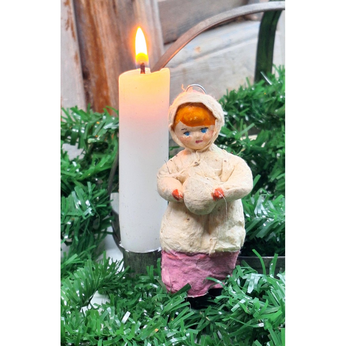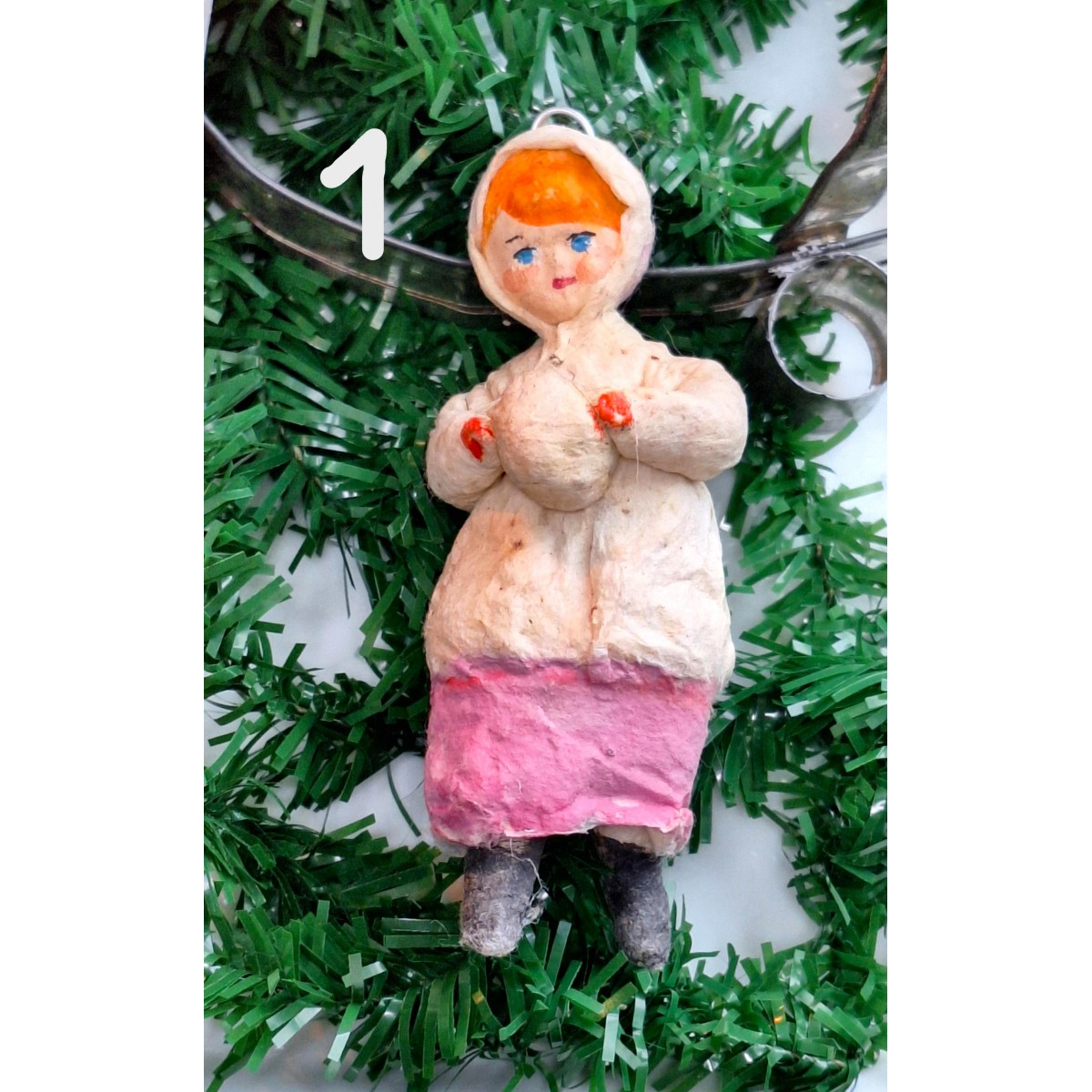 Så yndige figurer i presset vat fra 1940'. Alle er håndlavede, og unikke, for der er kun den ene af hver. Bemærk - de flotte detaljer på figuren.... Overflade patina forekommer..SE BILLEDER